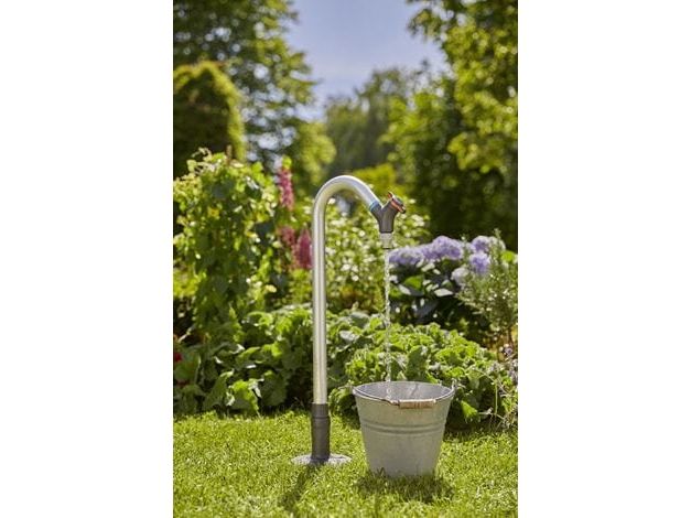 Haven fra GARDENA tilføjer et praktisk vanddispenser i haven. Opbygningen er meget enkel, uden at der er brug for værktøj. I løbet af få trin forbindes den udendørs vandhane med en vandstikdåse og er straks klar til brug. Ved hjælp af reguleringsventilen kan vandmængden reguleres og spærres helt. Den flotte hane har en behagelig højde, så det er nemt at fjerne vandet. Desuden kan den drejes fleksibelt was letter betjeningen. Selv uden tilsluttet slange er vandudtrækning takket være anti-splash sprøjtestfri. Materialer som aluminiumsrøret giver haven af høj kvalitet og udviklet i Tyskland en lang levetid og en høj robusthed.