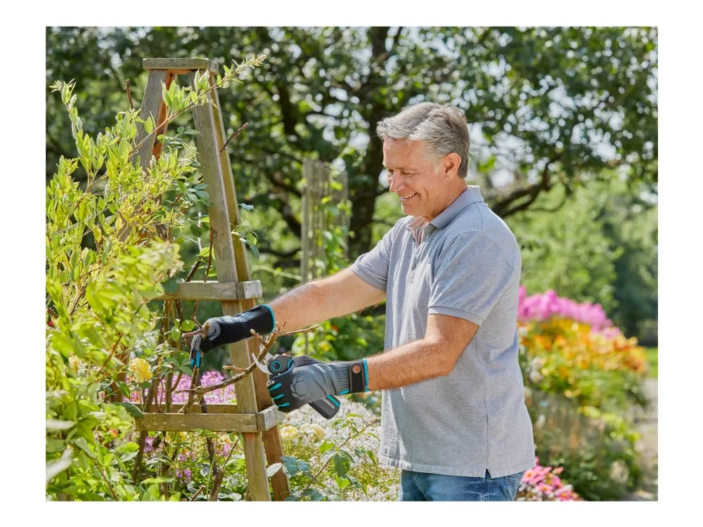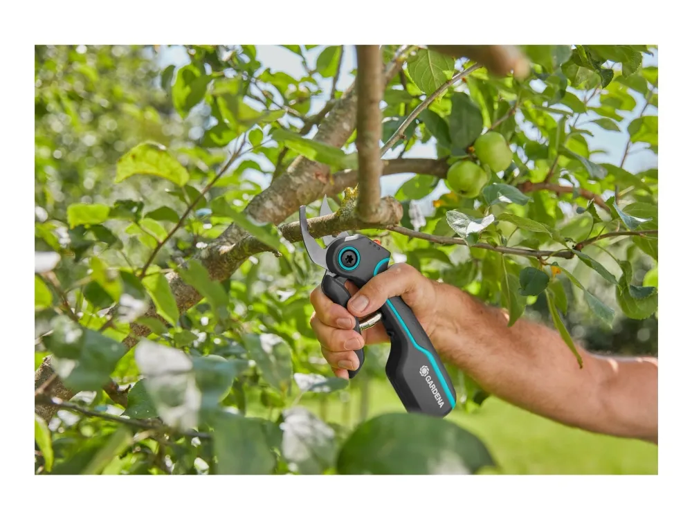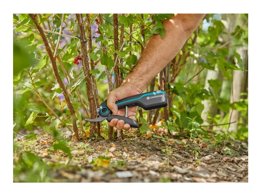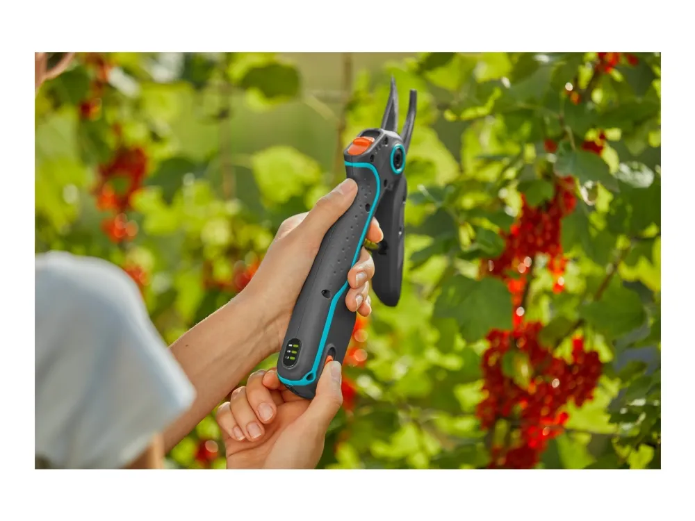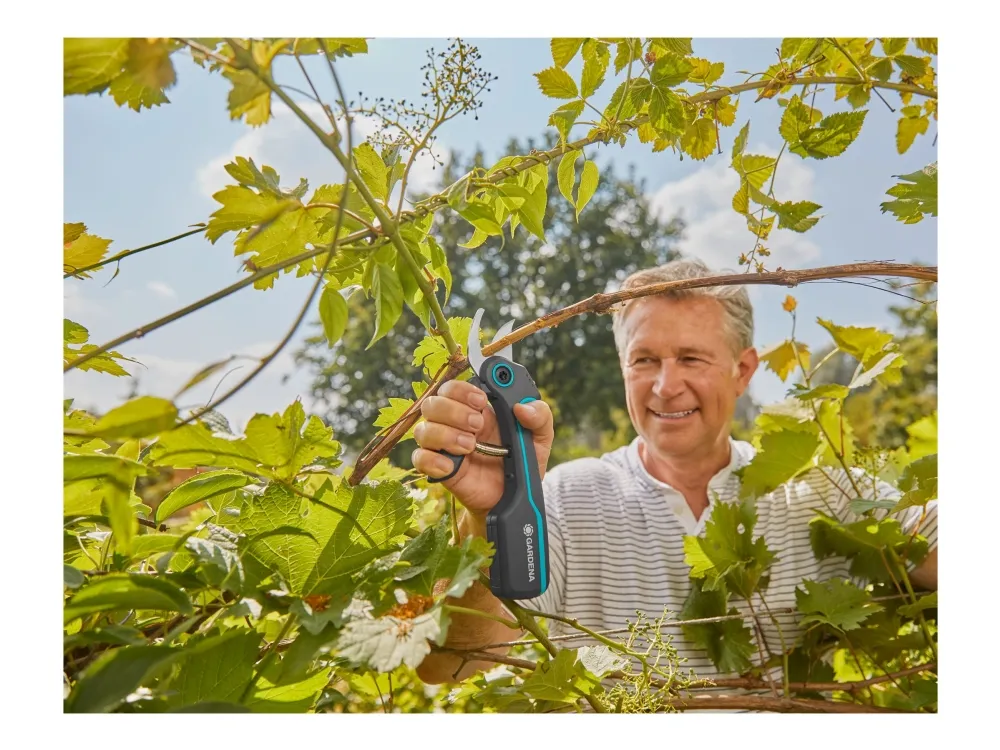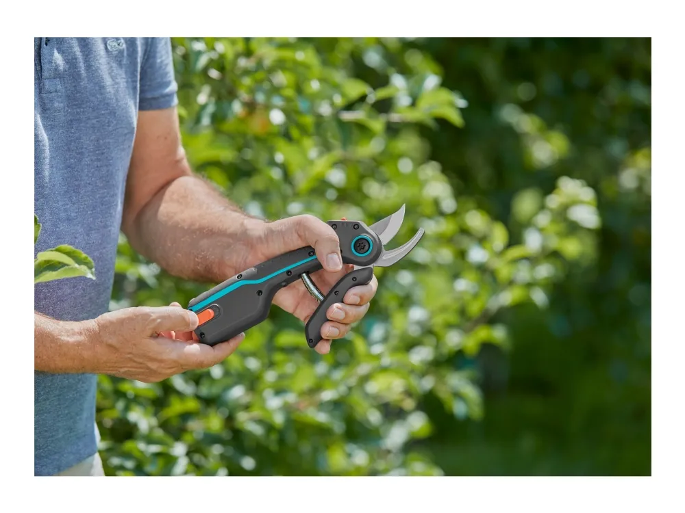 Gardenas AssistCut-saks er den ideelle assistenten for enkel og uanstrengt klipping av grener, unge skudd og blomster med en maksimal klippediameter på 25 mm. De batteridrevne sekatørene har en intelligent sensor som gir 5 ganger ekstra kraft (sammenlignet med en vanlig sekatør) ved kutting av tykkere greiner så snart det registreres motstand. Beskjæringssaksen reduserer belastningen på hendene, noe som gjør det enda enklere for deg å utføre hagearbeidet uten problemer. Når batteriet er fulladet, kan AssistCut utføre 1400 batteristøttede kutt. Takket være de ergonomiske håndtakene ligger saksen perfekt i hånden, og håndtakets åpningsbredde i to trinn gjør hagesaksen til det ideelle klippeverktøyet for ulike håndstørrelser. De presisjonsslipte bladene i rustfritt stål og bypass-prinsippet gjør at du kan klippe skånsomt og presist for å beskytte plantene dine. Når batteridriften er slått av, kan Gardena AssistCut brukes som en manuell hagesaks. Av/på-funksjonen sørger også for lang batterilevetid, siden batteriet ikke lades ut over tid.