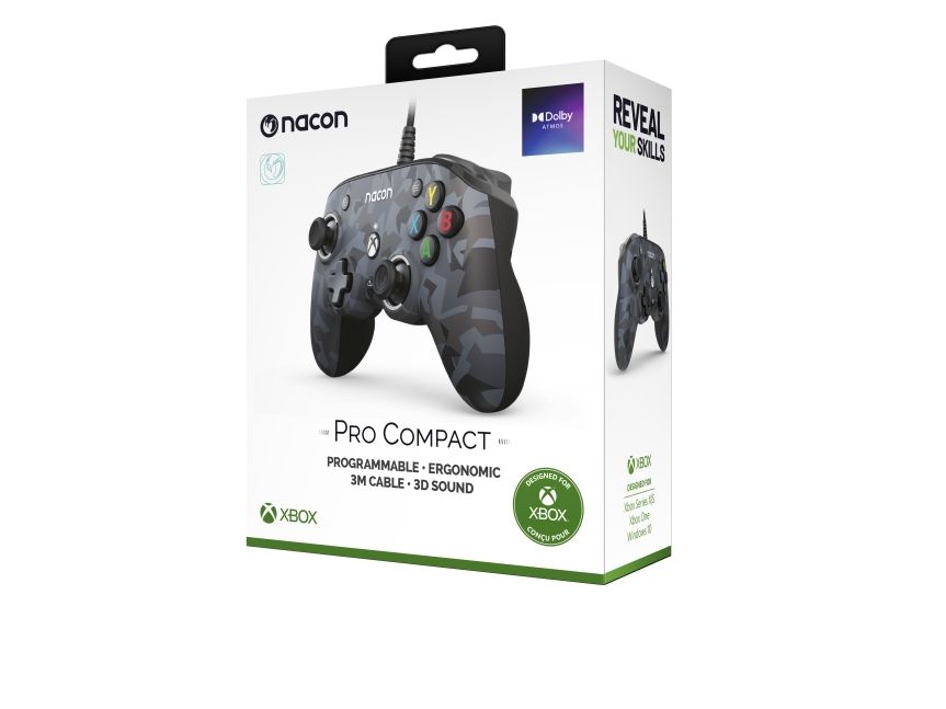NACON Camo Pro Compact Controller, Gamepad, PC, Xbox One, Xbox One S, Xbox One X, Xbox Series S, Xbox Series X, D-pute, Menyknapp, Del-knapp, Analog/digital, Koblet med ledninger (ikke trådløs), USB