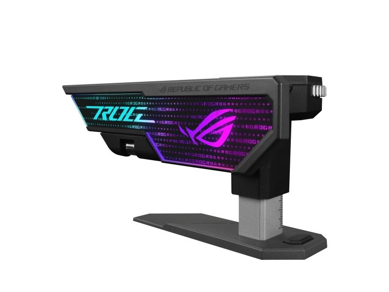 The ASUS ROG Herculx XH01 card holder combines functionality with captivating design. Crafted to ensure easy usage, this card holder simplifies organization while adding a touch of style to the setup. With ASUS Aura Sync technology, synchronize lighting across devices for a cohesive look that enhances the overall aesthetic. Featuring ARGB lighting effects, the card holder allows users to customize their experience, creating vibrant colors and dynamic patterns to match their gaming or workspace environment. This combination of practicality and visual appeal makes the ASUS ROG Herculx XH01 a valuable addition for gamers and professionals seeking to elevate their setups.