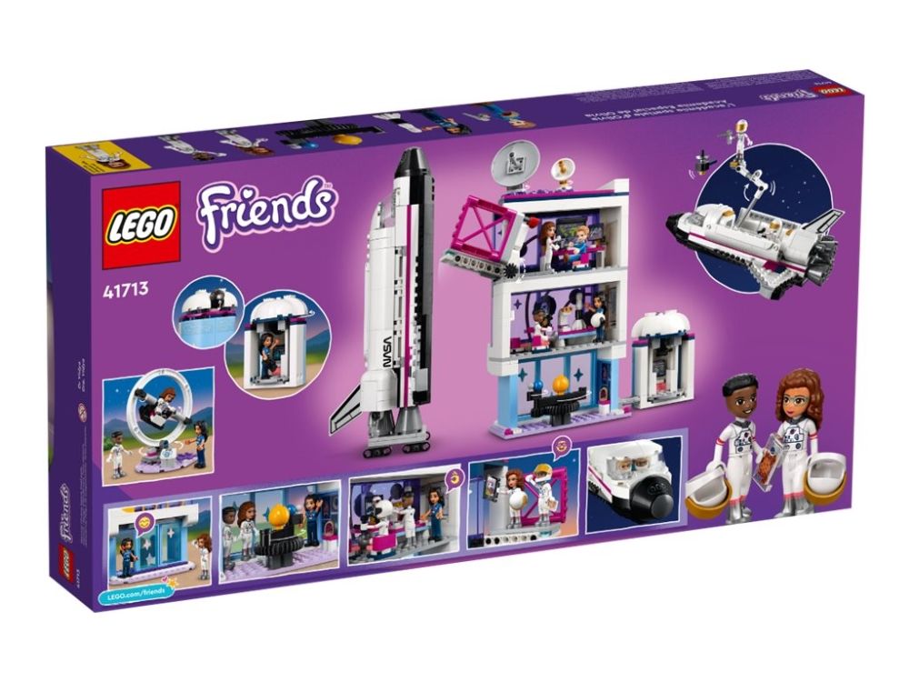 Gi aspirerende astronauter muligheten til å lære mer om romfart med settet Olivias romfartsakademi (41713). Barn fra åtte år kan trene til romferder sammen med figurer fra LEGO® Friends. Settet inneholder mange autentiske funksjoner, inkludert drivmotorene på romfergen til VR-simulatoren. Settet byr både på gøyal lek og gøyal læring – for eksempel så er alle bildene i akademibygget vitenskapelig korrekte, og tavlen i klasserommet er full av utregninger fra ekte romferder.