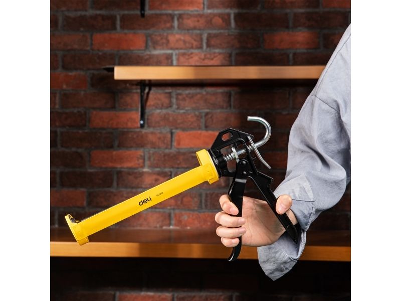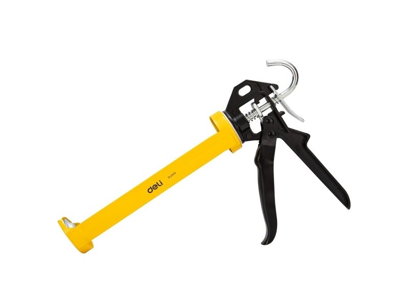 Deli Tools EDL2370. Type: Pneumatic caulking gun, Product colour: Black, Yellow, Frame material: Aluminium. Width: 230 mm. Quantity per pack: 1 pc(s)