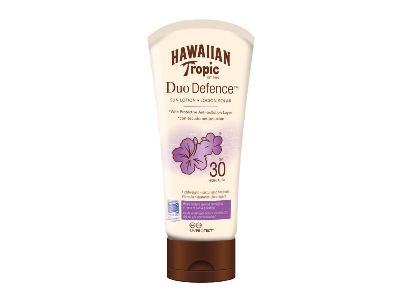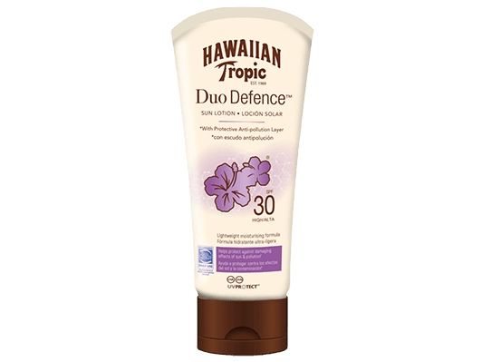 NEW Hawaiian Tropic® Duo Defence is our first anti-pollution sunscreen which helps to protect skin against the damaging effects of the sun and pollution and features the signature Hawaiian Tropic scent. Formulated with green tea extract to form a protective anti-pollution layer on your skin. The Its formula, infused with mango, guava, papaya, and passion fruit, provides indulgent protection that instantly transports you to the tropics.