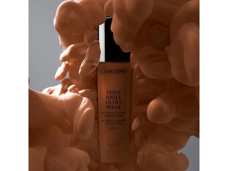Lancome Foundation Teint Idole Ultra Wear 24H Wear Comfort Retouch Free SPF15 Deze hoogdekkende foundation zorgt de hele dag lang voor een perfecte teint De frisse en smeltende foundation egaliseert de huid en zorgt voor een fluwelige matte en berispelijke finish Voorzien van SPF15 Kleur Beige Chataigne