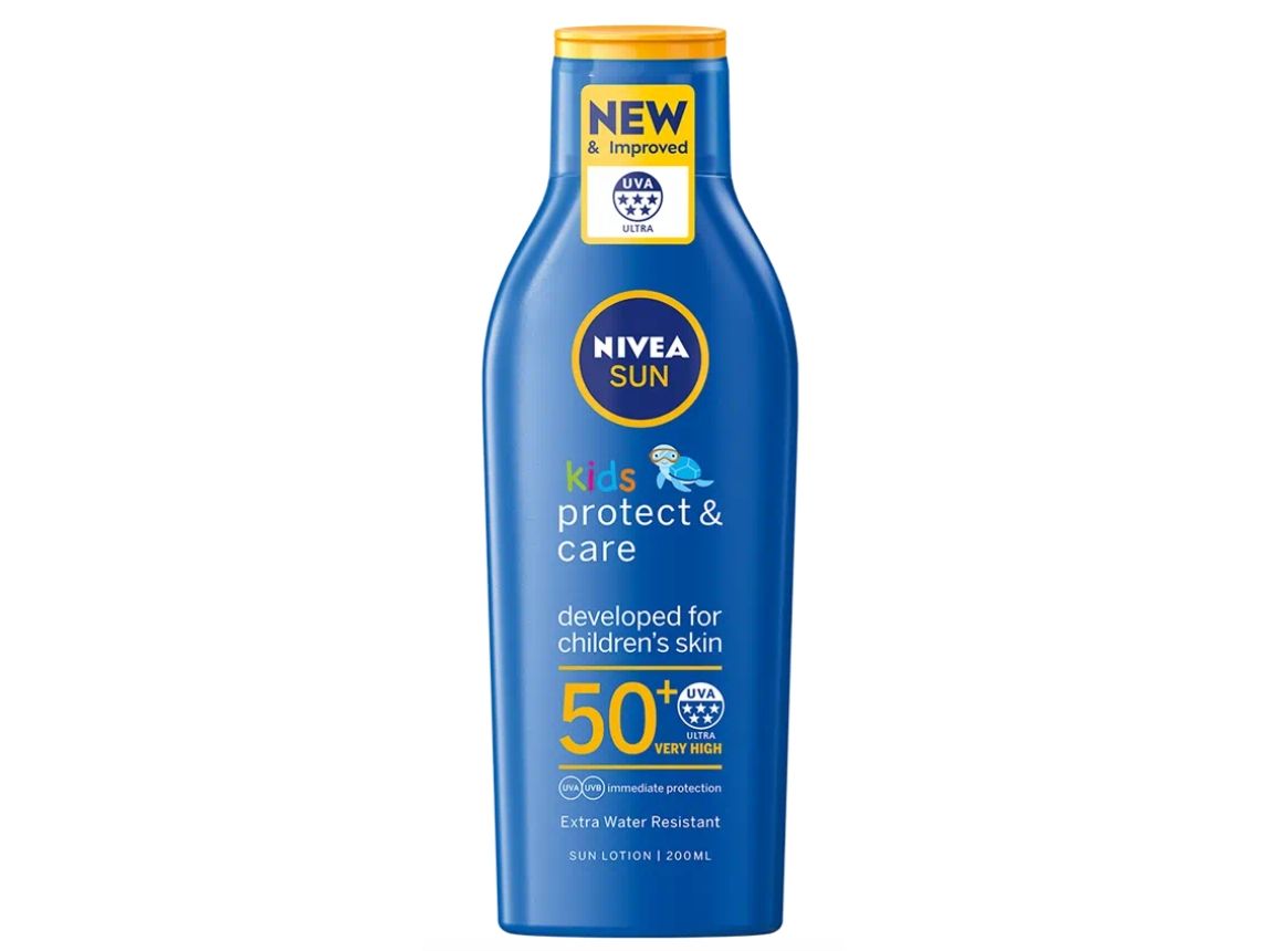 NIVEA SUN Kids Protect Care Sun Lotion SPF 50+ immediately protects your kids against sunburn and long-term skin damage caused by sunlight, offering highly effective 5* UVA and UVB protection. The caring and moisturising formula has been designed with the delicate skin of your loved ones in mind and helps reduce the risk of sun irritations. The lotion has been designed especially for kids and is extra water resistant - perfect for all of the splashing around! The skin compatibility of this sunscreen has been dermatologically proven. It is important to keep your babies and young children out of direct sunlight – no matter the SPF. NIVEA Sun cares for your skin and the planet with the new and improved formula being readily biodegradable and respecting the ocean by being free from: UV filters Octinoxate, Oxybenzone, Octocrylene and free of microplastic. Protect the whole family with our Adults and UV Face Range too! To complete your summer care routine, try our After Sun range.
