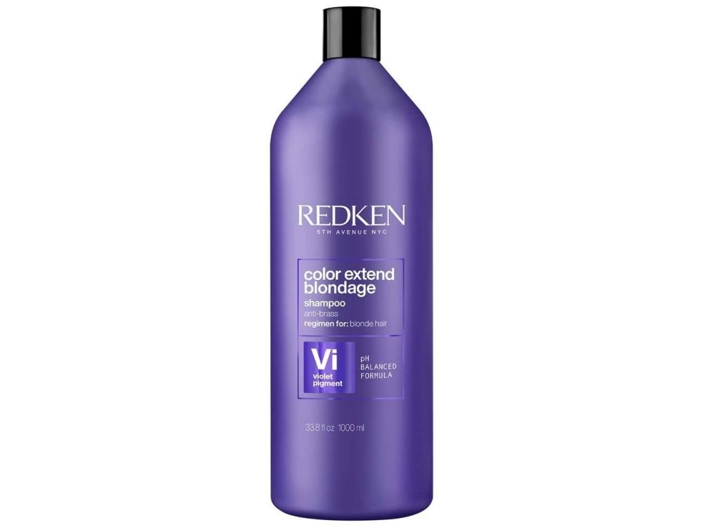 Redken's Color Extend Blondage Express Anti-Brass Mask is an ultra-pigmented purple hair mask and deep conditioner that ensures brighter, cooler blonde haircolor in just 5 minutes. Featuring a powerful purple toning formula, this hair mask helps to color correct and neutralize unwanted yellow undertones in even the brassiest blonde hair color.