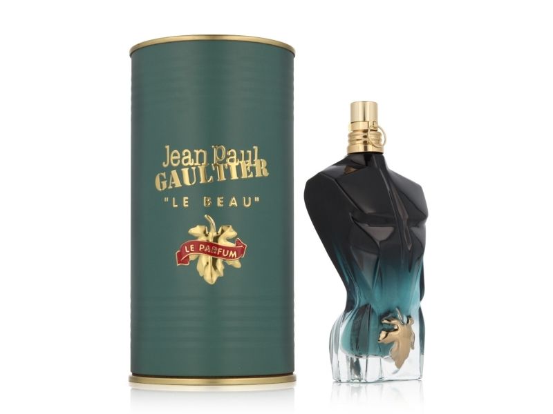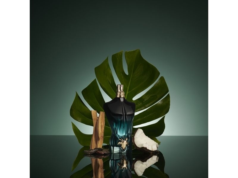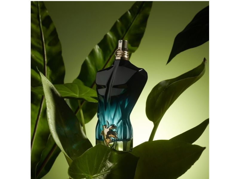 Nude bottle. Masculine glass. From lacquered black to transparent green, Le Beau Le Parfum intensifies the dégradé effect of its muscular torso, as well as its scent. Wearing nothing but a golden fig leaf. How can you resist the temptation?