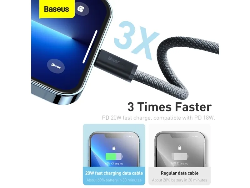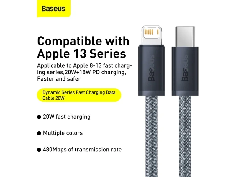 Baseus Dynamic. Cable length: 2 m, Connector 1: Lightning, Connector 2: USB C. Quantity per pack: 1 pc(s), Package type: Hanging box