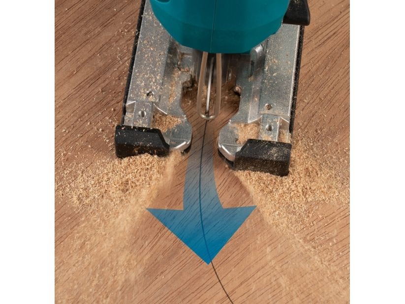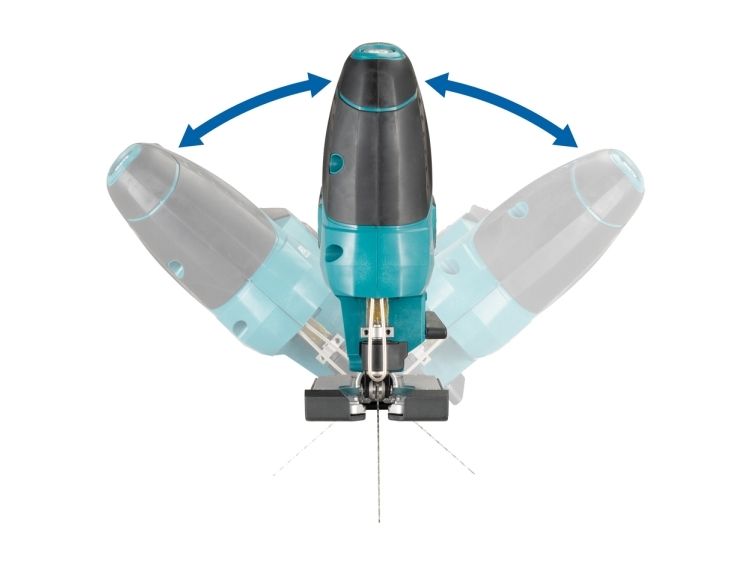An efficient saw with 3 Orbital Settings Plus Straight Cutting and tool-less blade change. Engine speed can be adjusted between 0 and 3000 min/s from a dial to suit the material. A stroke length of 23 mm and cutting capacity of 135 mm in wood and 10 mm in steel.