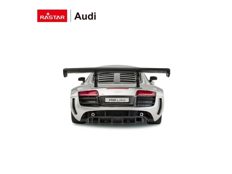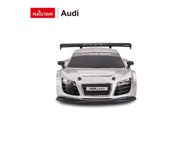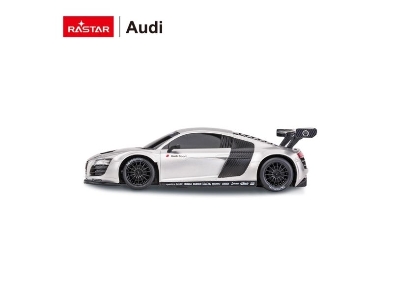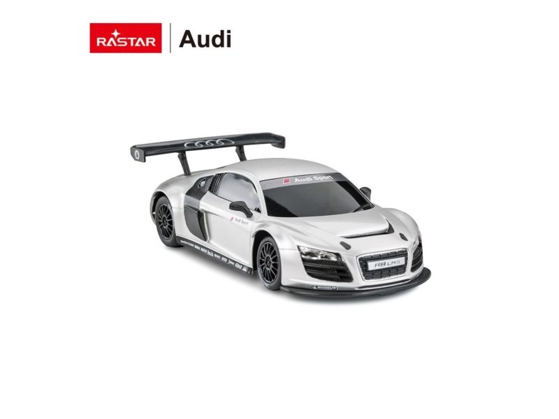 Denne sølvfargede Audi R8-raceren har et autentisk design, et sprøytestøpt karosseri og et uavhengig fjæringssystem. Bilen kan kjøre fremover, bakover og kan svinge til venstre og høyre. Fra 6 år.