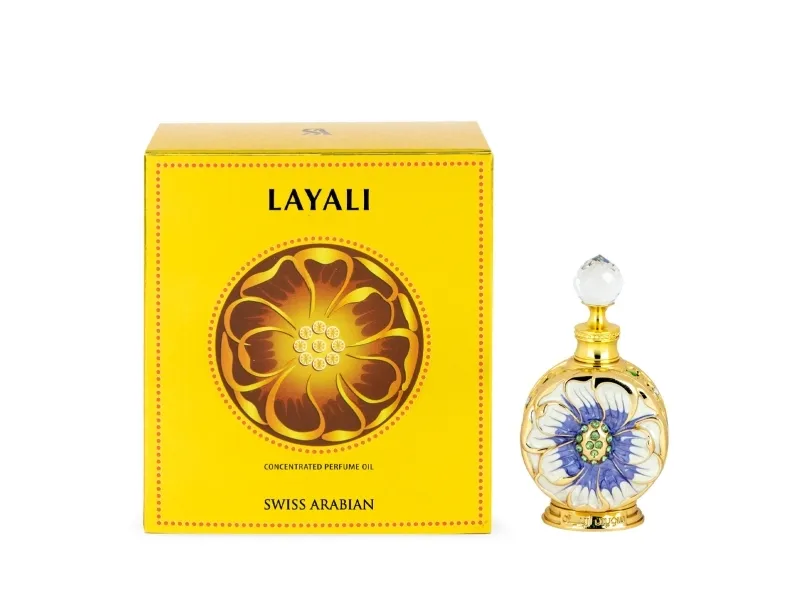 Layali introduced by Swiss Arabian is a feminine perfume for women This fragrance starts with orange flower blackcurrant and plum for a delightfully sweet opening The middle notes are a floral blend of rose jasmine and ylang ylang for a sensual enticing aroma