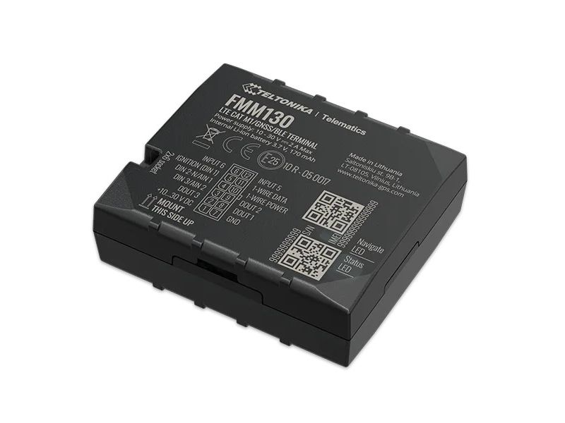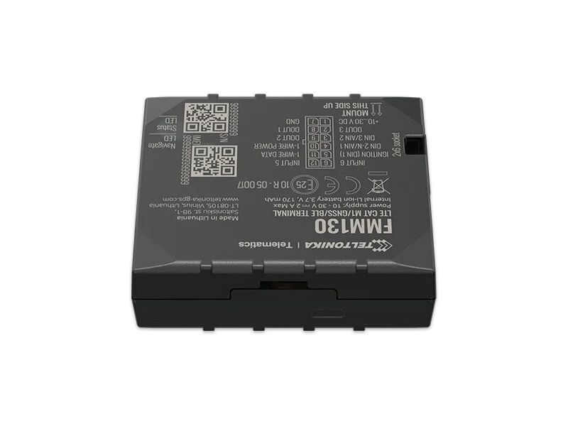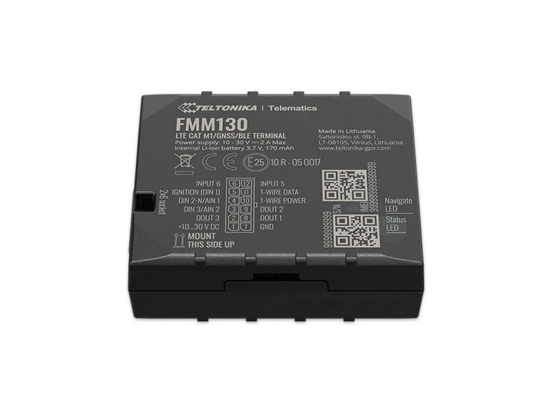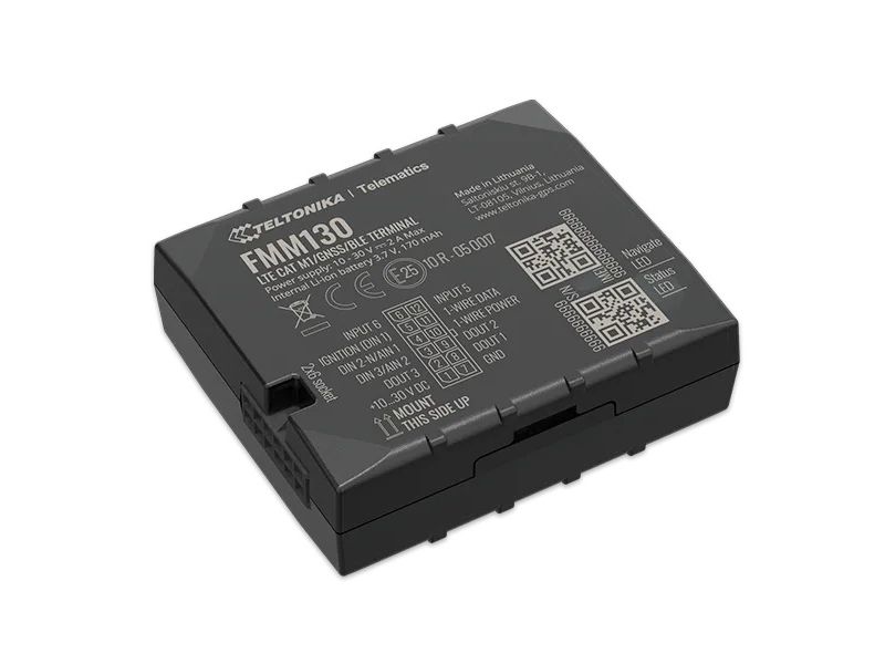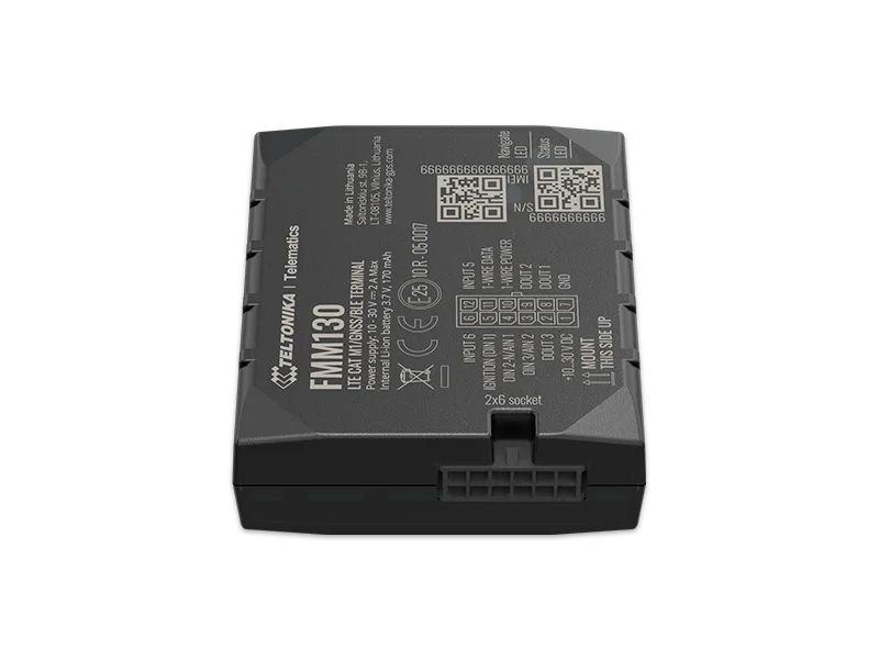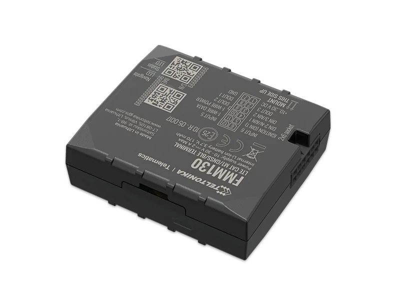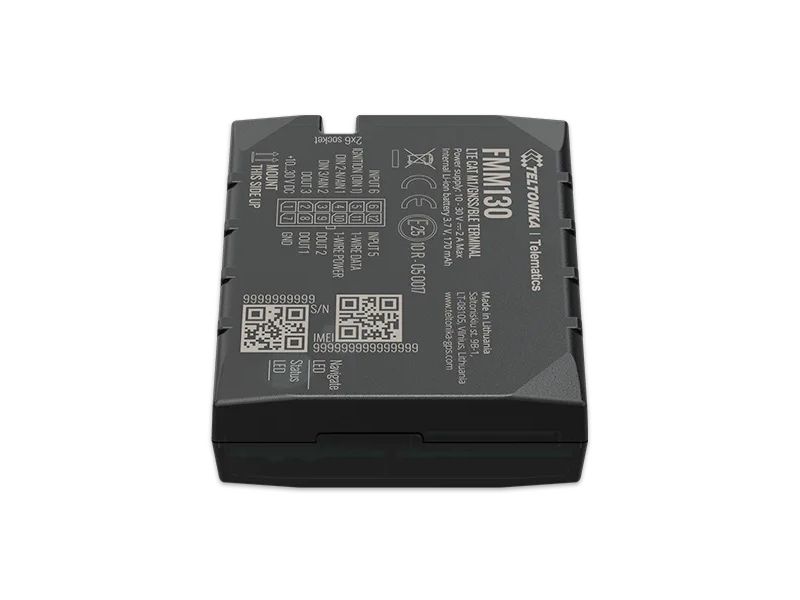 FMM130 is small and professional real-time tracking terminal with GNSS and LTE CAT-M1/NB-IoT/GSM connectivity and backup battery. Device equipped with GNSS/Bluetooth and LTE CAT-M1/NB-IoT modules with fallback to 2G network, internal GNSS and LTE antennas, configurable digital, analogue inputs and digital outputs, negative input, impulse inputs. It is perfectly suitable for applications where location acquirement of remote objects is needed: fleet management, car rental companies, taxi companies, public transport, logistics companies, personal cars and so on.