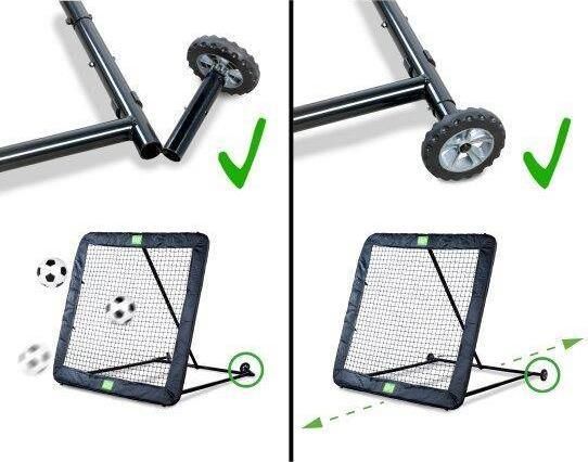 Setting the angle is done in a snap, which can be quickly chosen during training if you want to play another game or practice another exercise. With the Quick-Relaese wheels, the Rebounder stands firmly during use and is also easy to move after use.