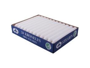 Kronelys Ø22x200 mm Brændetid 7 timer Ren Stearin Svanemærket Hvid,24 stk/pk