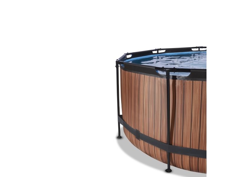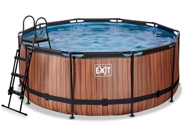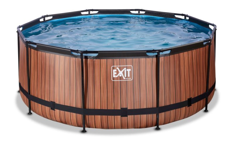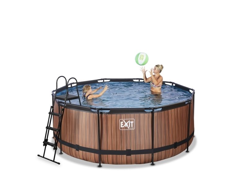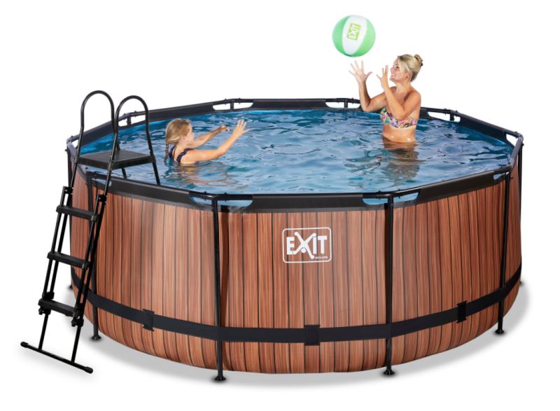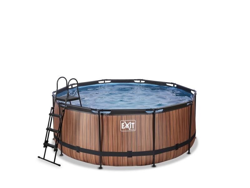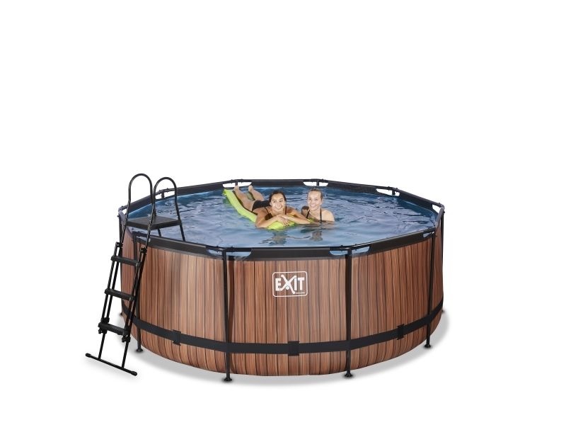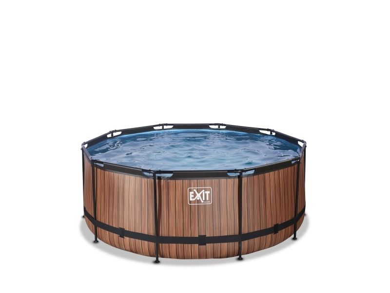 EXIT Wood pool ø360x122cm med filterpumpe - brun EXIT wood poolen med ø360x122cm er en rund fritstående pool, der ligner træ. Som standard leveres poolen med en filterpumpe og en poolstige, så du sikkert kan komme op i og ud af poolen. Den fritstående swimmingpool er stor nok til, at man kan flyde i den på en luftmadras. Eller vil du hellere svømme under vandet? EXIT Wood swimmingpoolen er 122cm dyb, hvilket giver dig mulighed for at dykke i den. Med den fritstående pool fra EXIT Toys får du helt sikkert nogle "vandtastiske" oplevelser i din egen have.