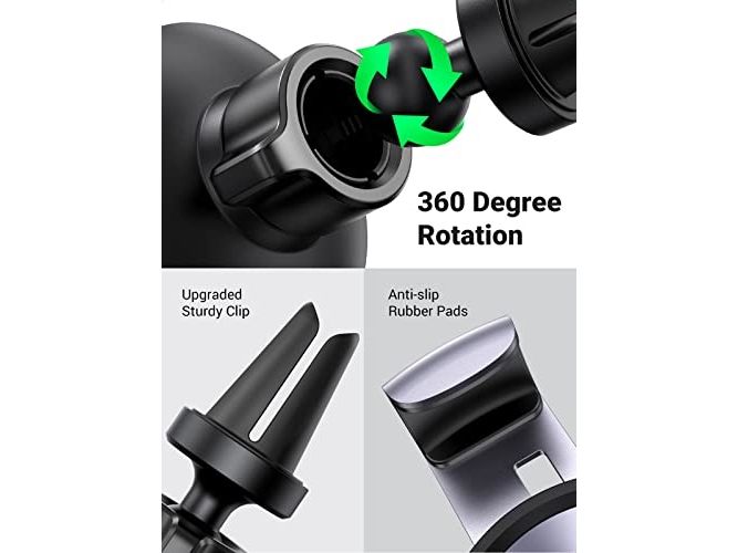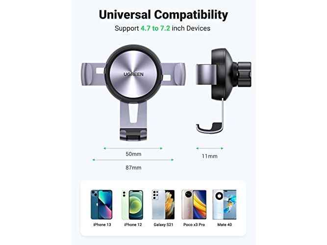 The Ugreen car holder is designed for the convenience of on-the-go navigation and hands-free calls. This versatile holder supports a wide range of cellular phone sizes, from 4.7" to 7.2", ensuring compatibility with most smartphones. The adjustable features, including horizontal, vertical, and 360° rotation, allow for optimal positioning, making it easy to switch between portrait and landscape views. Installation is straightforward, fitting seamlessly into car ventilation grids without causing obstruction, providing a secure hold for your device.