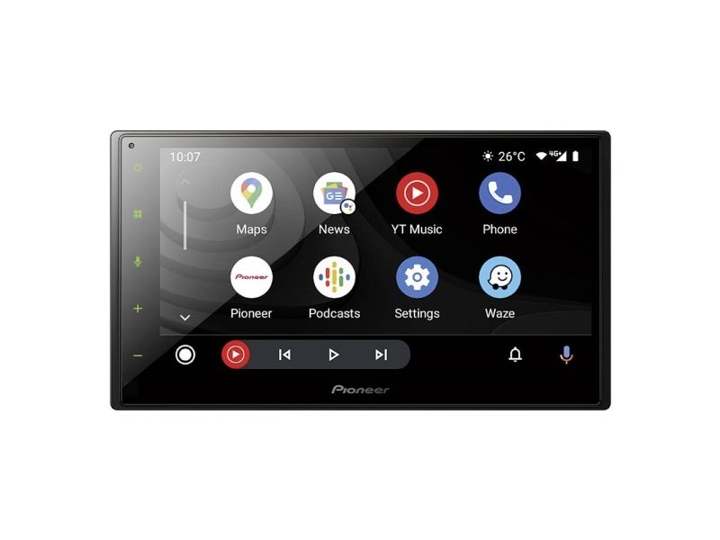 6,8" stor kapasitiv berøringsskjerm. Trådløs Apple CarPlay. Trådløs Android Auto. Spotify og WAZE. DAB+ og FM-tuner (DAB-antenne må kjøpes til). Google Maps via Apple Carplay. Siri Eyes Free. Bluetooth for trådløs telefoni og musikkstrømming. Mulighet for å koble til ryggekamera. Parkeringsguider for kamera. 4 x 50 watt. Kort chassis.