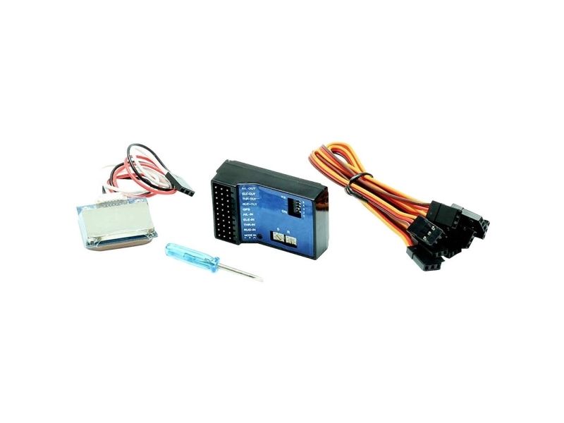 Master GPS 6-akslet flystabilisator med GPS-system i komplet sæt. ideal til normale anvendelser og FPV. Kompatibel med alle almindelige fjernstyringssystemer fra 5 kanaler.3 tilstande kan kobles på senderen:1) normal tilstand, uden GPS-indgreb2) højdestabilisering, modellen flyver stabilt i en højde af 35 m over jorden efter start3) horisontal flyvning, modellen kan styres frit og vende tilbage til udgangspunktet