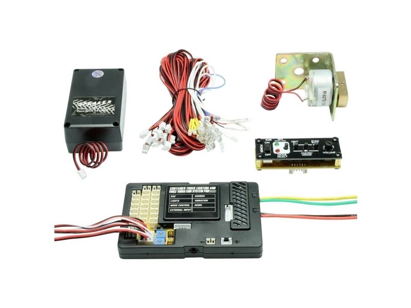 Multifunktionsenhed MFE-02 (EU Version) Let at installereSimpel betjeningAlt er klar til brugVibrationsmodul og højttaler60A regulator integreret til brushless- og børstemotorDriftstilstande og belysning kan styres via smartphone Genial multifunktionsenhed MFE-02 til lastbiler og truck køretøjer.Belysning til trailer / container fås som specialtilbehør!Komplet All-in-One løsning med mange effekter belysning, lyd, vibration. Dermed bliver din lastbil levende!39 lydeffekterAlarm 1 - alarm 2 - Motor starter - motor tomgang - blæser - gasstød - kørestøj - lad blokvognen gå i indgreb - slå motoren fra - lad motoren op - lad luften slukke 1 - aftap 2 - udstødningsbremse - bremser - kort horn - lange horn - blinklys 1 Blinklys 2 - havariblink - bagsædealarm - parkeringsbremse - Sluk motoren...16 lyseffekterForlygter - baglygter - hastighedsvisning - tågeforlygter - blinklys - baklygter - taglygter - advarselsblink - ekstra lygter ...21 specialeffekterTænd/sluk motoren - slå horn fra - tænd/sluk lyset - tænd/sluk blinklys/havariblink...