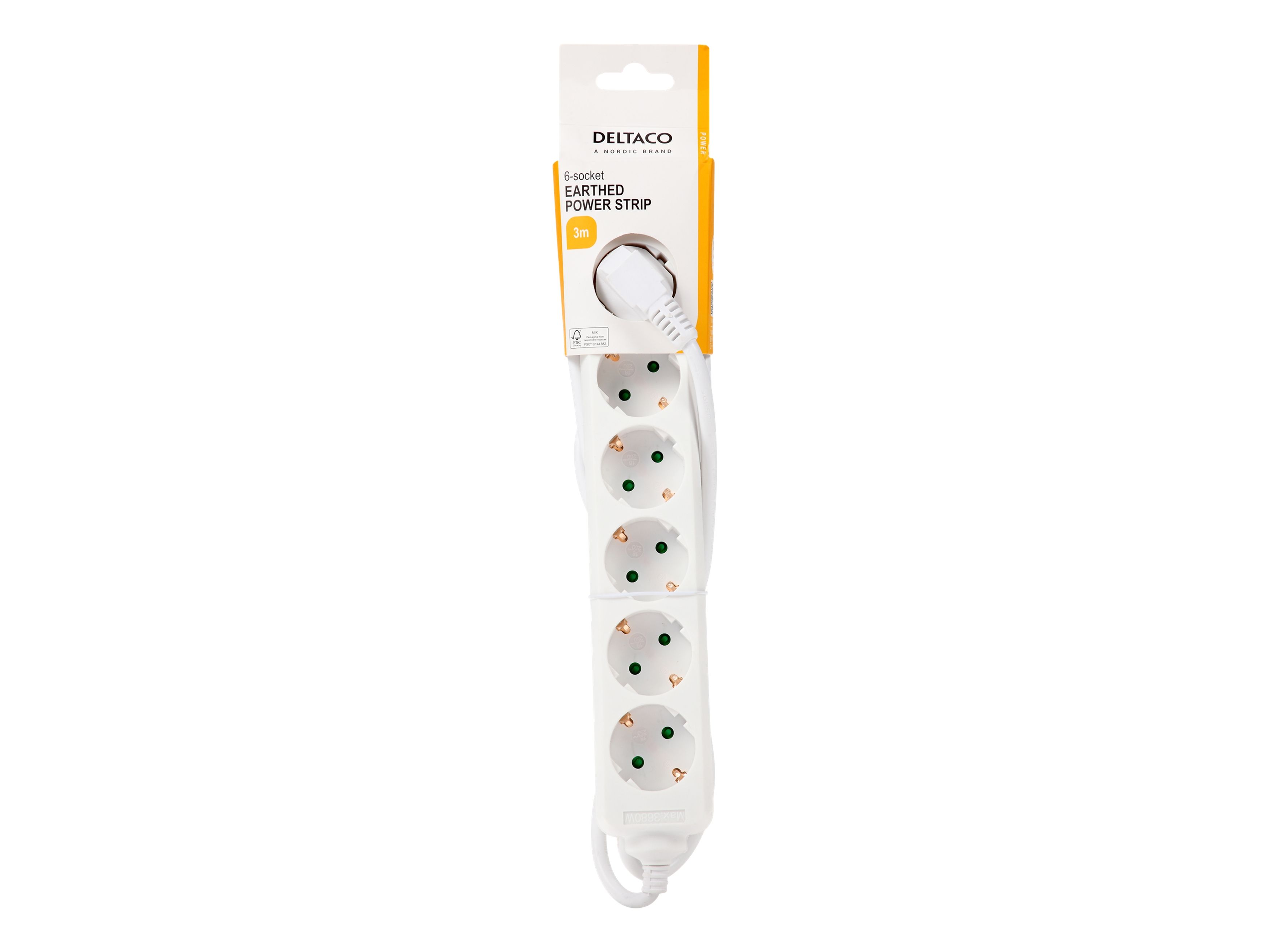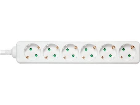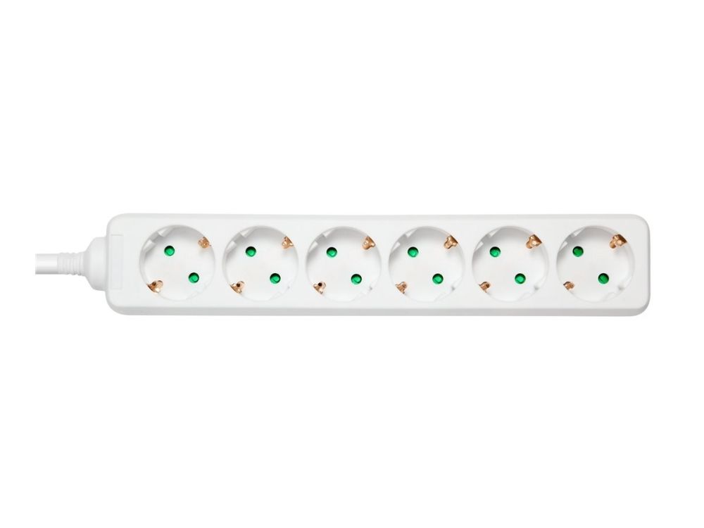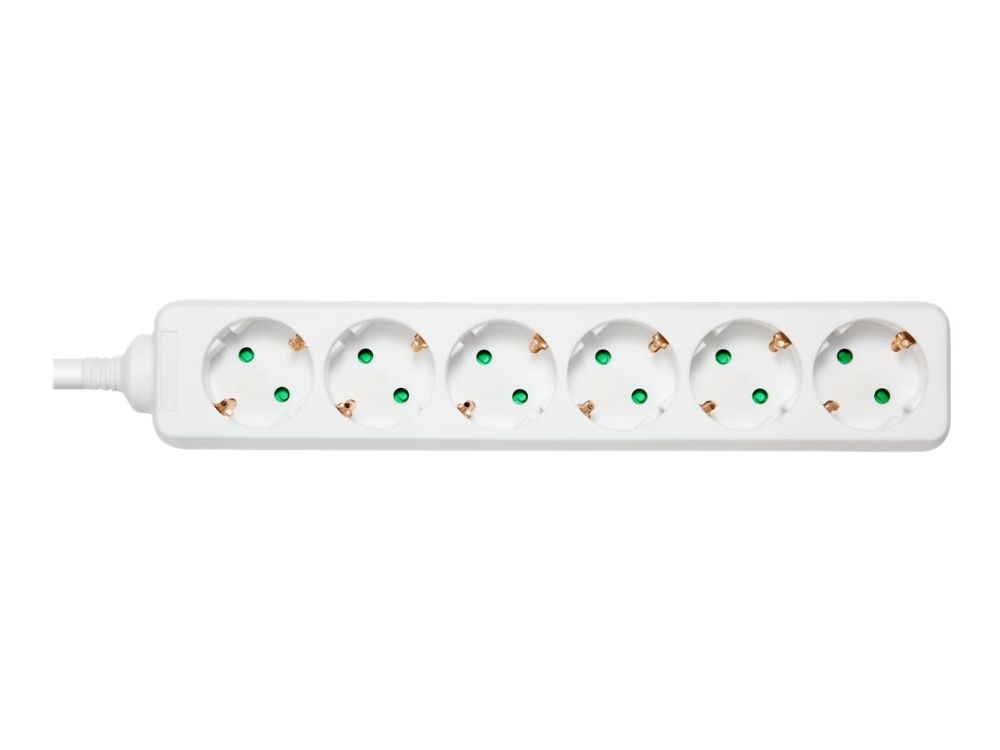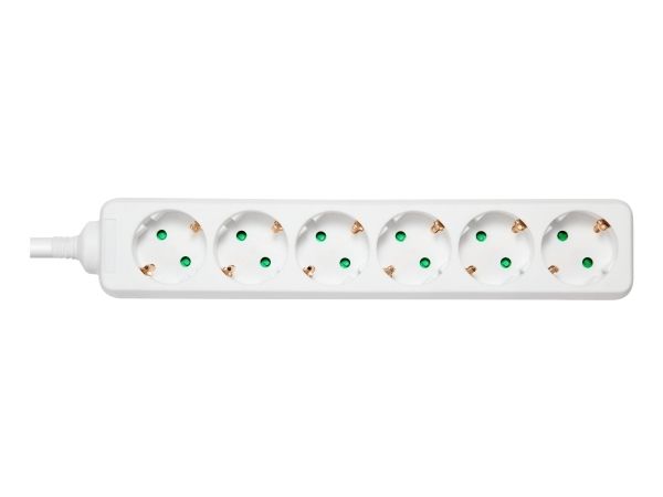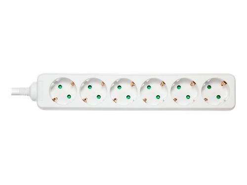 DELTACO GT-0601 - Flerkoplingslist - AC 250 V - 3680 watt - inngang: power CEE 7/7 - utgangskontakter: 6 (6 x strøm CEE 7/3) - 3 m kabel - hvit