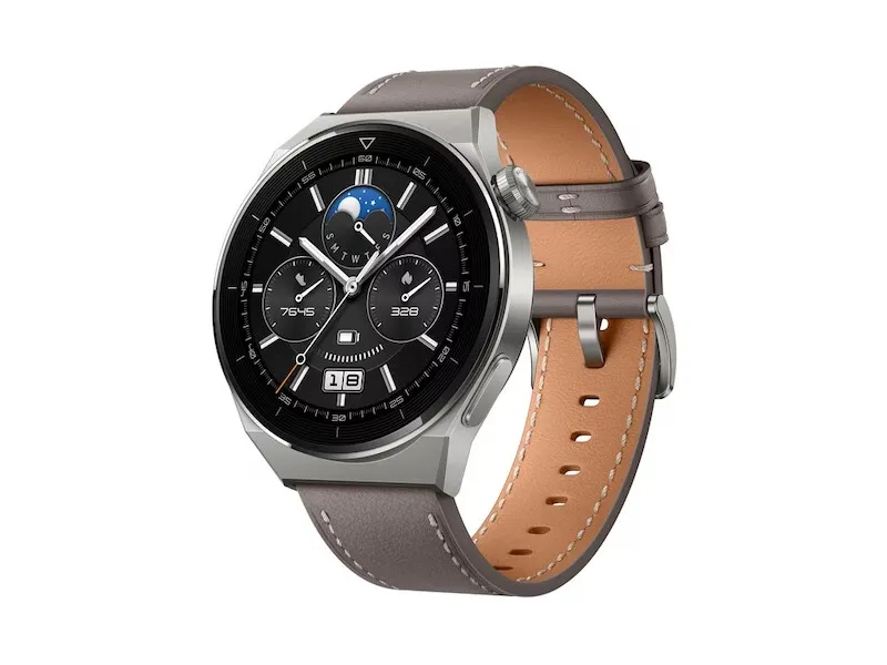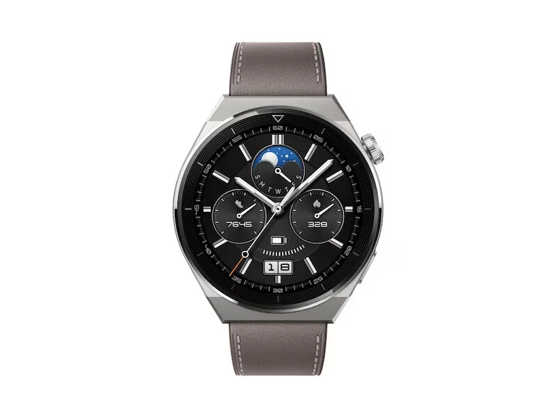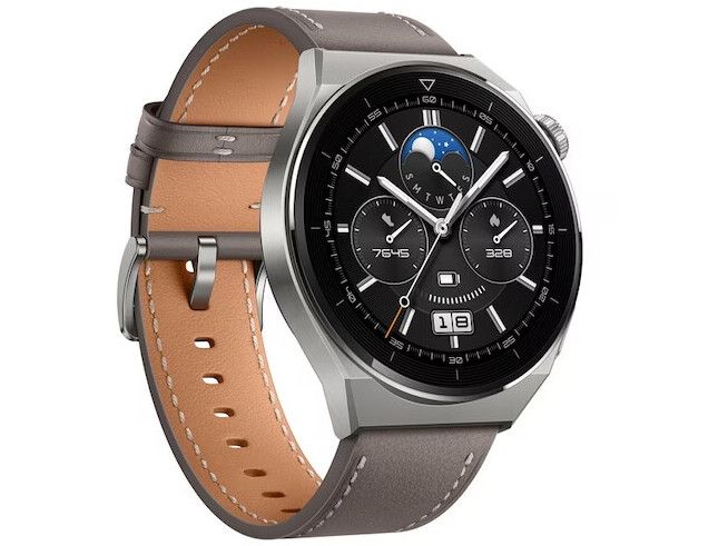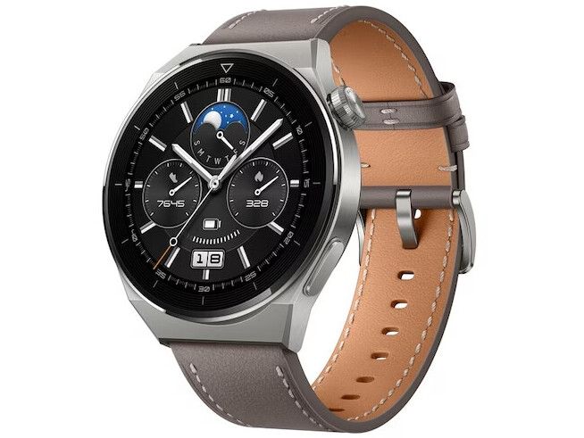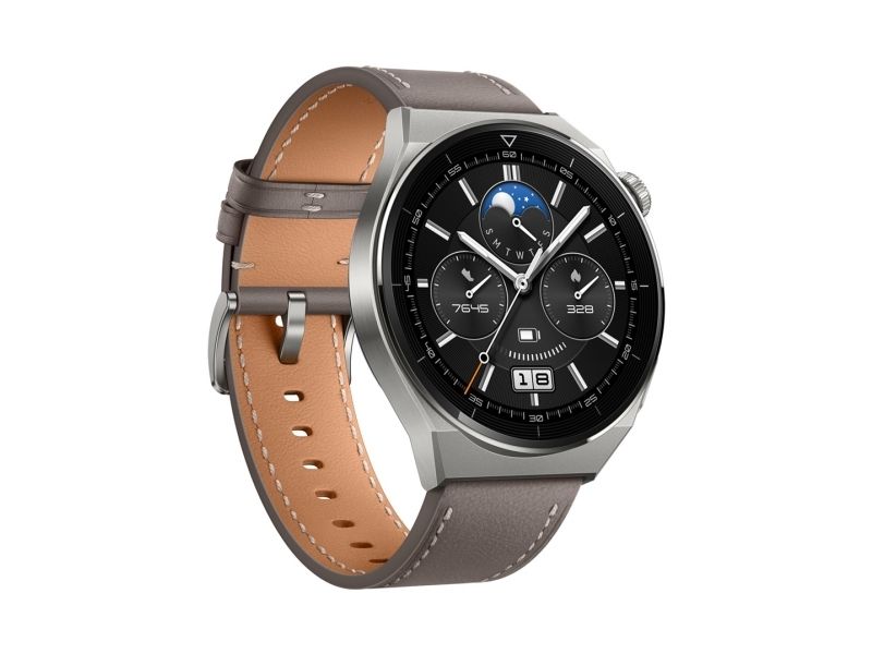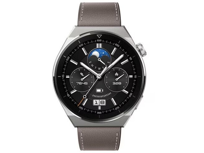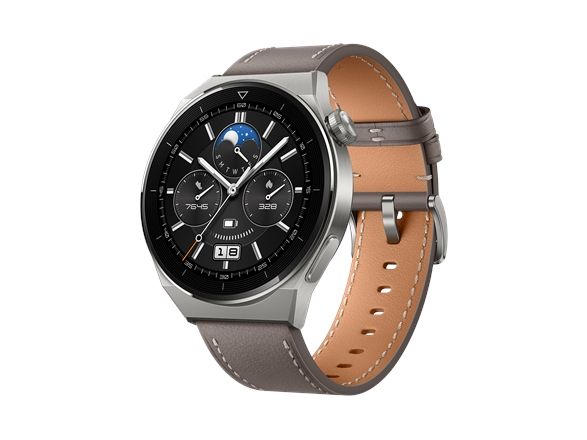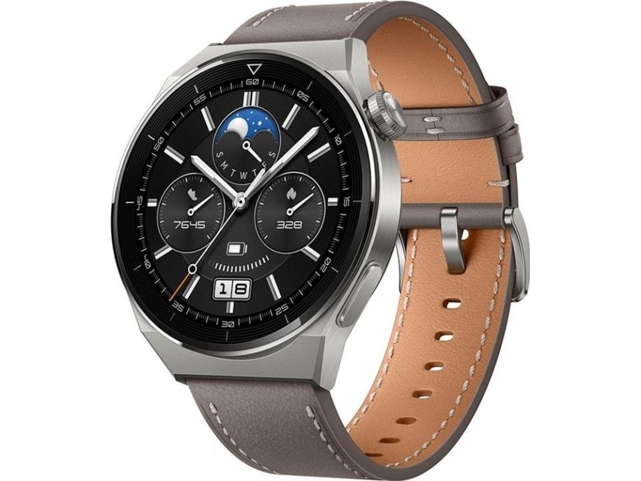 Huawei WATCH GT 3 Pro. Display diagonal: 3.63 cm (1.43"), Display technology: AMOLED, Display resolution: 466 x 466 pixels, Touchscreen. GPS (satellite). Battery capacity: 530 mAh. Weight: 71.9 g. Waterproof up to: 30 m, Band material: Leather, Band colour: Grey. Operating system installed: HarmonyOS