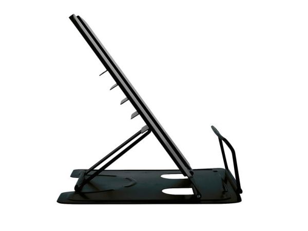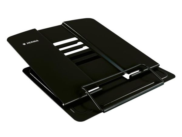 Reading stand, bookend, book and cookbook holder, tablet computer holder: there are many names for HERMA's unique and multifunctional reading rack. The reading rack is black, made of lacquered metal and has a height of 19 cm when opened, a width of 19.8 cm and a depth of 15.7 cm. It is therefore also ideal for heavy books, atlases and computer tablets. Its tilt angle can be adjusted to 5 different positions, making it comfortable for the neck to look at a book or tablet computer whether it's standing on the desk, on campus or in the kitchen. For a firm and optimal stand, it is equipped with slip-resistant knobs on the bottom. If it is not needed or has to be transported, it can be easily folded and stowed away. The multifunctional book stand is also available in the colors blue, white, pink and red. Perfect, for example, to give books, tablet computers, magazines, exercise books, music sheets and cookbooks, in different sizes, the perfect stand and hold. Flexible to use in the office or home office, when travelling, at school, on campus, in kindergarten, in the kitchen or at outdoor barbecues and at home on the sofa.