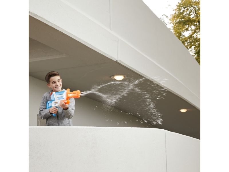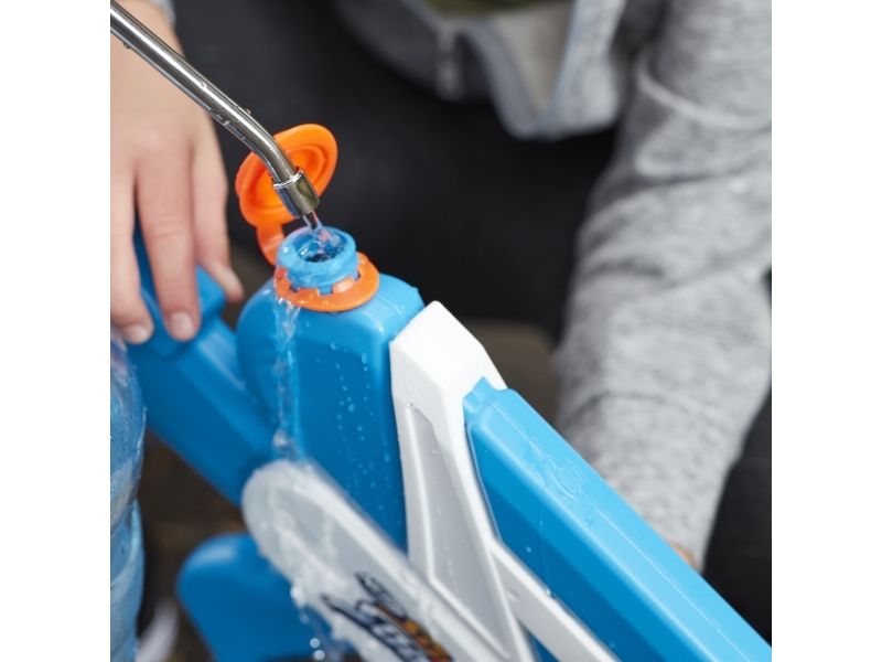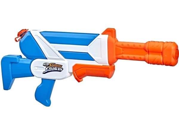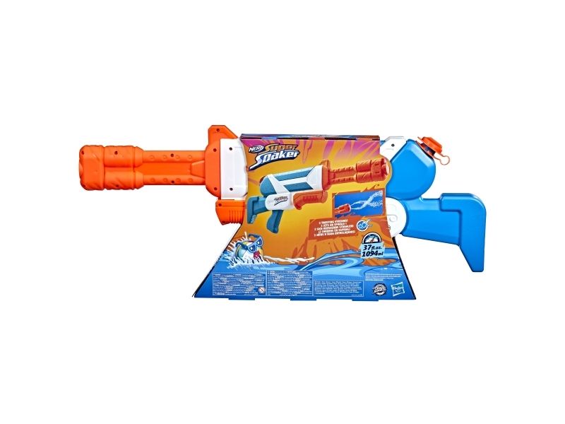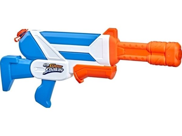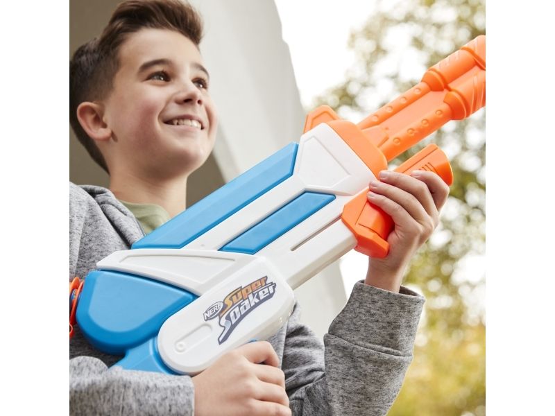 Fyr av 2 virvlende stråler med vann fra Nerf Super Soaker Twister-vannblasteren! Kom deg ut, og pøs på med moroa med denne Super Soaker-blasteren! Når du pumper håndtaket, vil en sylinder på tuppen av løpet rotere for å lage en dobbeltspiral av vann for å sprute på motstanderne! Tilfør vannkampene en dynkende vri med Twister-vannblasteren. Den er enkel å fylle på og fyre av. Åpne lokket, fyll tanken, lukk igjen og pump håndtaket bakover og fremover. Plask uti utendørs vannleker med denne Nerf Super Soaker-blasteren som slipper løs virvlende vannstråler! Tankkapasiteten er 1094 milliliter. Nerf Super Soaker-merket har pøst på med moro siden 1989 og fortsetter å dynke alle med vannavfyrende galskap! Kom deg ut for ekstrem dynking med Nerf Super Soaker-blastere! Nerf Super Soaker og alle tilknyttede produkter er varemerker som tilhører Hasbro.