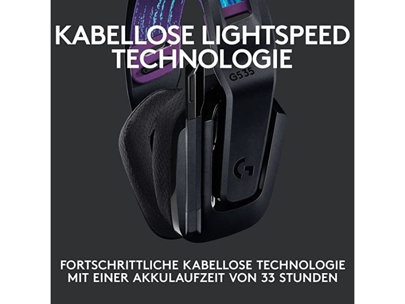 Logitech G535 LIGHTSPEED - Hodesett - Full størrelse - 2,4 GHz - Trådløs - USB - Svart