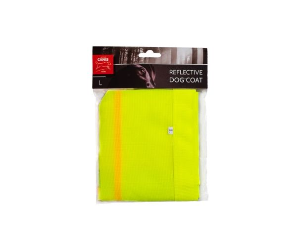 Neongul refleksvest fra Active Canis med reflekterende striber. Lukkes med velcro rundt brystkasse og hals.