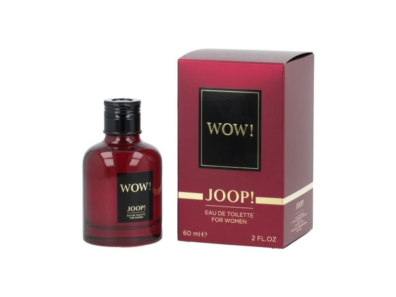 Perfect for cold weather and hot nights out Joop Wow is a seductive boldly feminine fragrance that leaves a chic yet sensual trail The opening notes are tart sweet and bright with wild raspberry and rhubarb infused with rose water Velvet floral tones of rose absolute and peony bloom at the heart followed by a sheer alluring finish of shimmering white musk warm amber and earthy enchanting patchouli