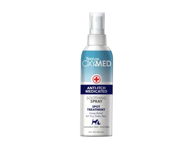 En medicinsk lugnande och vårdande spray, för hundar och katter med kliande och torr hud. Använd mellan badning. Snabbverkande. Passar katter och hundar. Innehåller havre, vitamin E och vitamin B5.