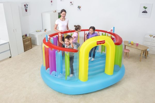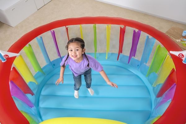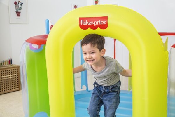 Both kids and parents will love all the great features of the Fisher-Price Bouncetopia Bouncer! With the built-in pump, all parents have to do is press one button, press one button, then sit back and relax as the bounce inflates itself in minutes. Kids will have a blast as they bounce the day away, all while developing hand-eye coordination and working on balance and dexterity. As they bounce, challenge them to count or learn the names of the different colors that wrap around the bouncer in rainbow order. The transparent walls make for a fun design, and also act as a safety feature where parents can easily keep an eye on the kids as they play. Plus, for added safety, this bouncer only has one opening for entry and exit. This helps parents make sure that kids aren’t going in and out of the bouncer unsupervised. Great for indoor use, the Fisher-Price Bouncetopia Bouncer is a fun play toy built for all-year use!