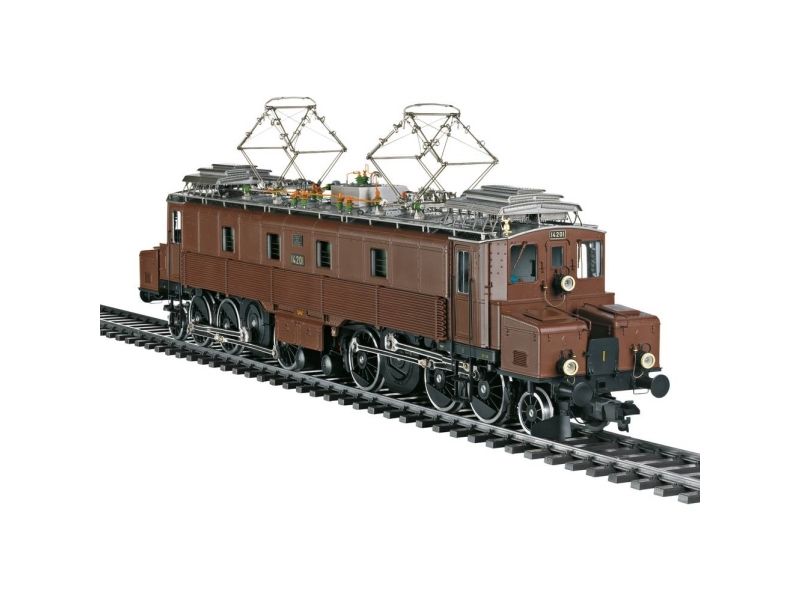 Model: Komplet nykonstruktion, understel med hovedramme og opbygning i trykstøbt zink. Mange påsatte messing-slyngdele. Med digital-dekoder MFX med op til 32 funktioner, bufferkondensator indbygget, styret højkapacitetsdrev og omfattende lydfunktioner som kørestøj, blæser, lokomotivpluff, Multiholdermeddelelse, banegårdsmeddelelse, baggrunds-støj på banegården og meget mere. Drift mulig med vekselstrøm, jævnstrøm, Märklin Digital og DCC. Højeffektive motorer med drev på alle aksler. I digital drift kan hæves og sænkes med hensyn til forskydningsstrøm. Hvid LED-frontlanterne, skifter mellem kørselsretning, konventionelt i drift, kan kobles digitalt. Hvid LED-belysning i førerrummet, afhængig af kørselsretningen. Maskinrumsbelysning kan tilkobles. Schweizisk lysskifte i rød og hvid, falske kørselssignaler foran separat tilkobles.døre til åbning, indvendig indretning, førerhus med lokoførerfigur. Betjeningshåndtag af metal og mange andre påsatte detaljer som skilte, vinduesviskere, fløjte m.m. Bufferbjælke med fjederbuffere og påsatte bremseledninger. Telexkobling bagpå, som er monteret som standard, foran skruekobling. Kan udskiftes med den anden koblingstype (medfølger).kørbar minimumsradius 1.020 mm. Længde over buffer 60,3 cm. Vægt ca. 6,1 kg.