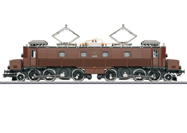 Forbillede: Museumslokomotiv CE 6/8 i SBB Historic i mørkebrun farve i den aktuelle driftstilstand i epoke VI. Driftsnummer 14201.