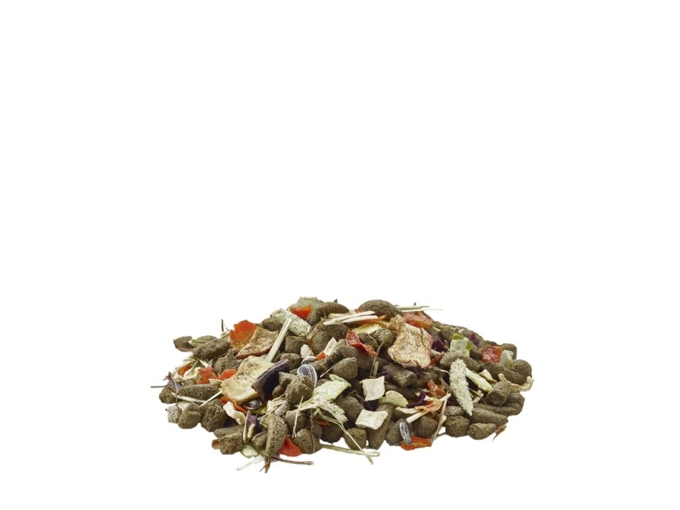 Kaninblandningen är berikad med extra gräs, örter och grönsaker för att främja en hälsosam matsmältning, tandhygien och en glänsande päls hos din kanin. Den mångsidiga mixen av ingredienser säkerställer en god smak och näringsrik måltid. Se till att din kanin äter upp allt innehåll för en balanserad kost och undvik att den bara väljer ut favoritbitarna.Uppdatera mat och dricksvatten varje dag. Beroende på storlek och ras rekommenderas en genomsnittlig daglig matdel på 50 till 100g för en kanin. Ge också gott om Dogmans delikatesshö för varierad kost. Kombinera gärna med Natursnacks för ytterligare variation för djuret.