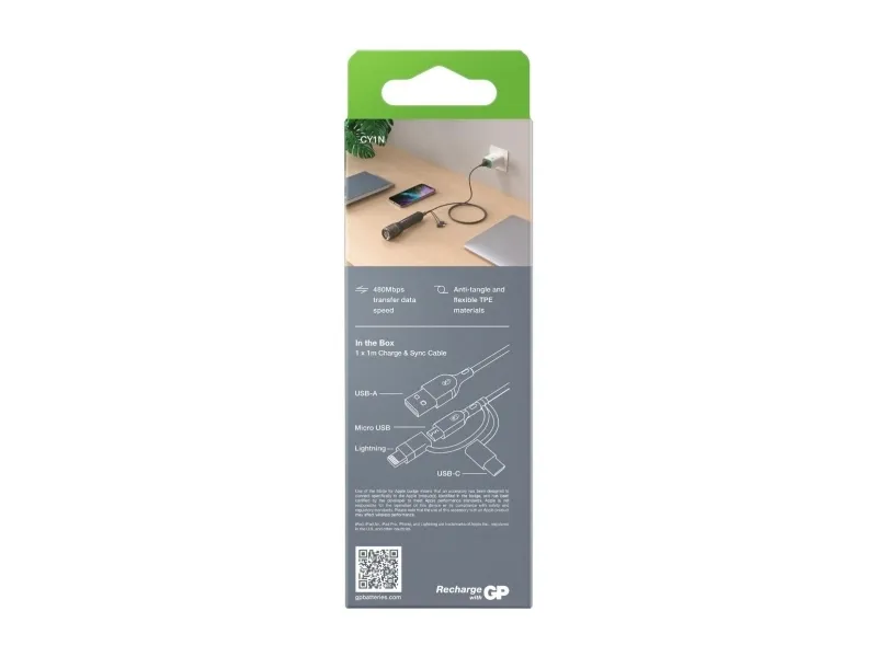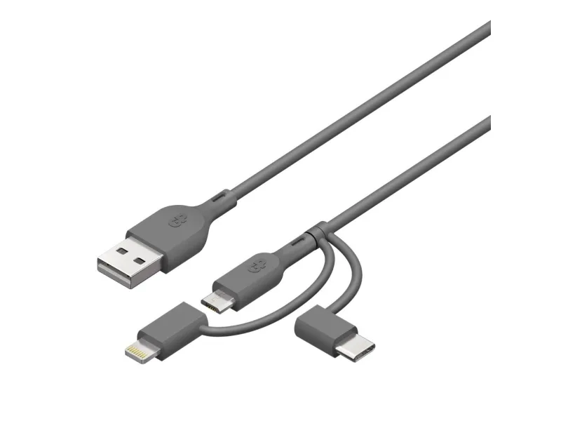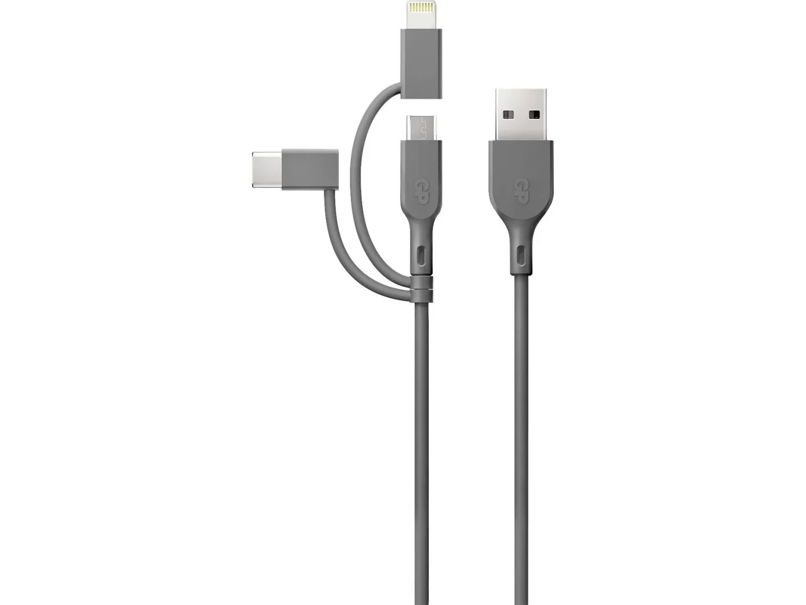 GP Batteries CY1N, 1 m, USB A, USB C/Micro-USB B/Lightning, 0,48 Gbit/s, Grå