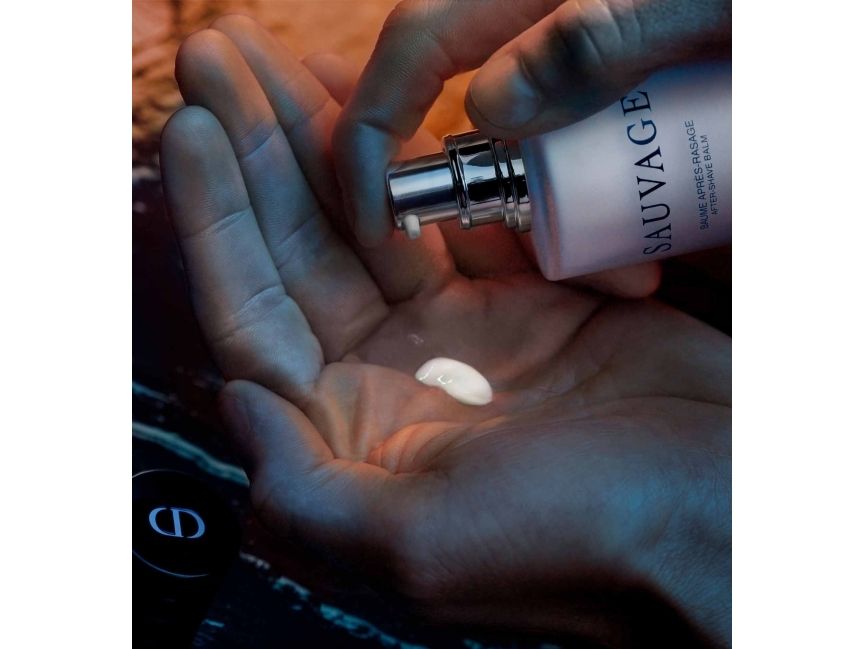 The Sauvage after-shave balm is quickly absorbed and leaves the skin with a matte finish, scented with the fresh and woody notes of Sauvage.