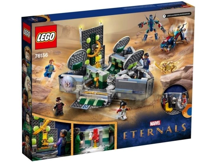 2. Inkluderer seks minifigurer – Makkari, Ikaris, Thena, Sersi og eksklusive Druig og Phastos – to Deviant actionfigurer, inkludert Deviant-lederen Kro, et romskip, våpen og tilbehør.