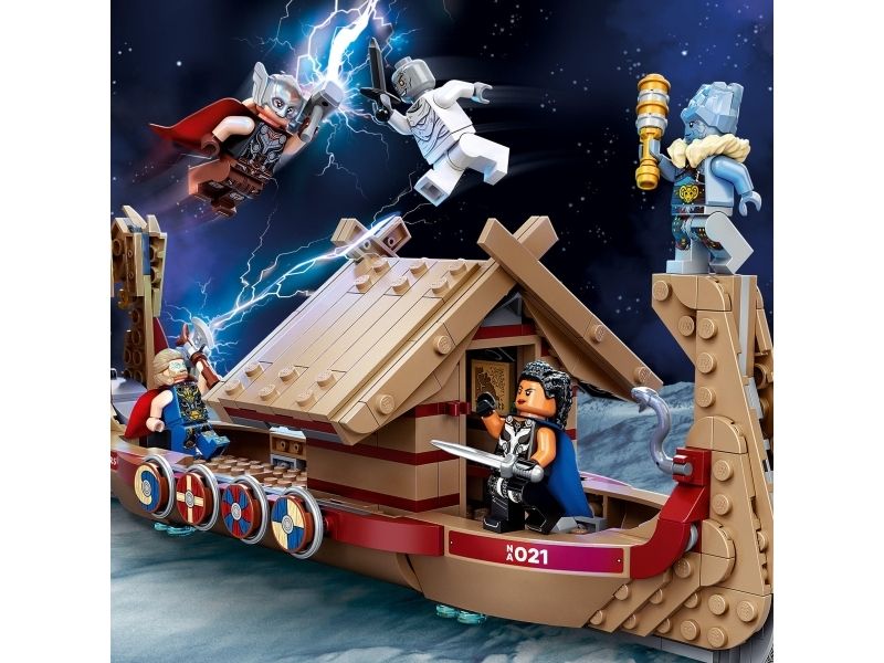 2. Ikoniske superhelter – Thors mektige skip rommer fem minifigurer fra filmen: Thor, Mighty Thor, Valkyrie, Korg og Gorr. Masse autentisk tilbehør inspirerer barn til å finne på nye og spennende eventyr