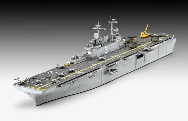 . Vandlinjemodel . Indvendigt servicedæk . Fly og helikoptere . Indeholder mærkater til 4 Wasp-klasse skibe (USS Wasp, USS Essex, USS Kearsarge, USS Boxer)