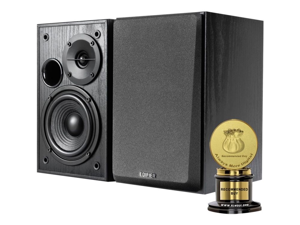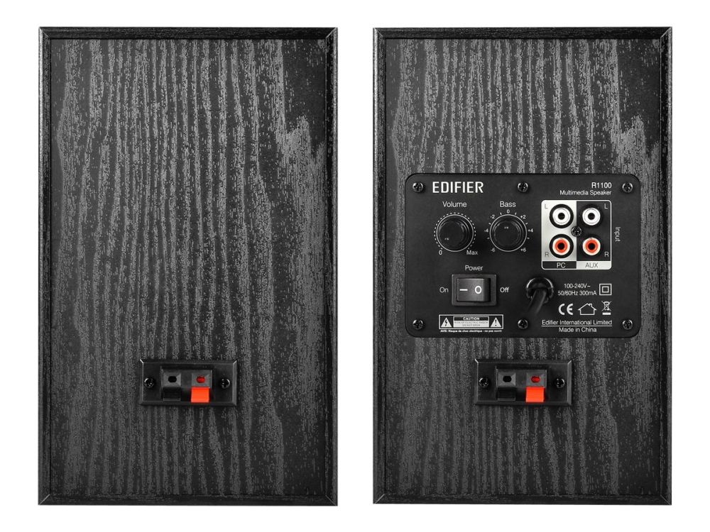 Equipped with dual RCA inputs, the R1100 can produce up to 42 W RMS of audio output. A bass driver and front-facing bass reflex port ensures bass notes are robust and rich in sound. Connect to multiple devices and personalize your listening experience with the bass and volume adjustment dials located on the active speaker.