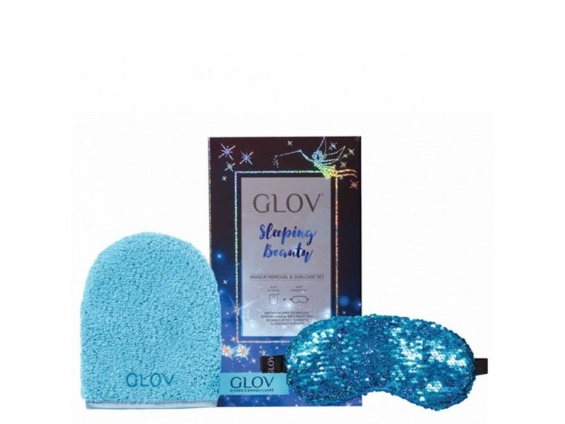Glov Sleeping Beauty-sett: Sleeping Beauty, sovemaske, blå + Sleeping Beauty sminkefjerner-hanske, bouncy blue (for kvinner)