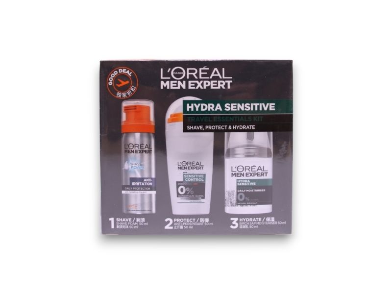 Shiseido Travel Set L'Oreal Paris: Men Expert, Alcohol-Free, Hydrating and Regenerating, Day & Night, Cream, For Face, 50 ml + Men Expert, Alcohol-Free, Anti-Sweat, Deodorant Roll-On, For Men, 50 ml + Men Expert, Glycerin, Against Irritation, Shaving Foa