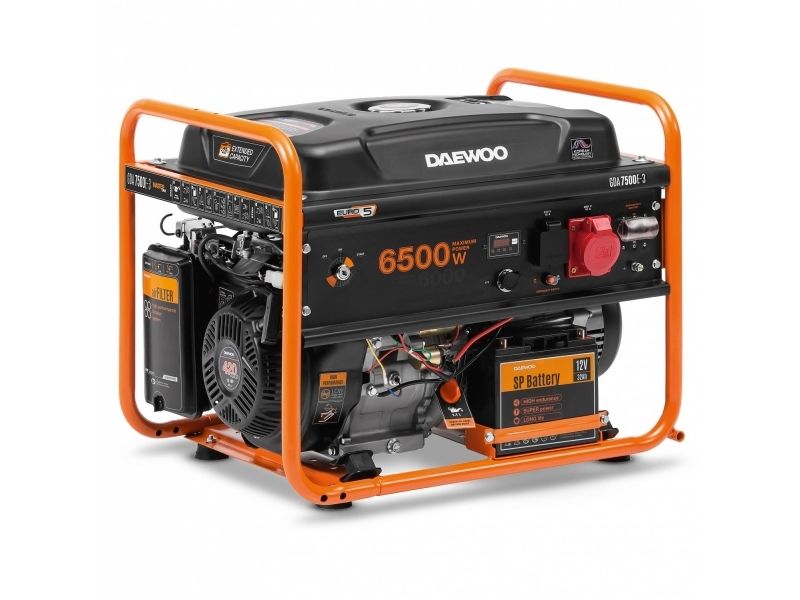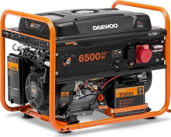 Engine type 4-stroke Displacement 420 cm³ Petrol Output power 6500 Watts Fuel tank capacity 30 l 380 V Engine power 15 HP Typical runtime at half load 17 hours Weight 84.4 kg