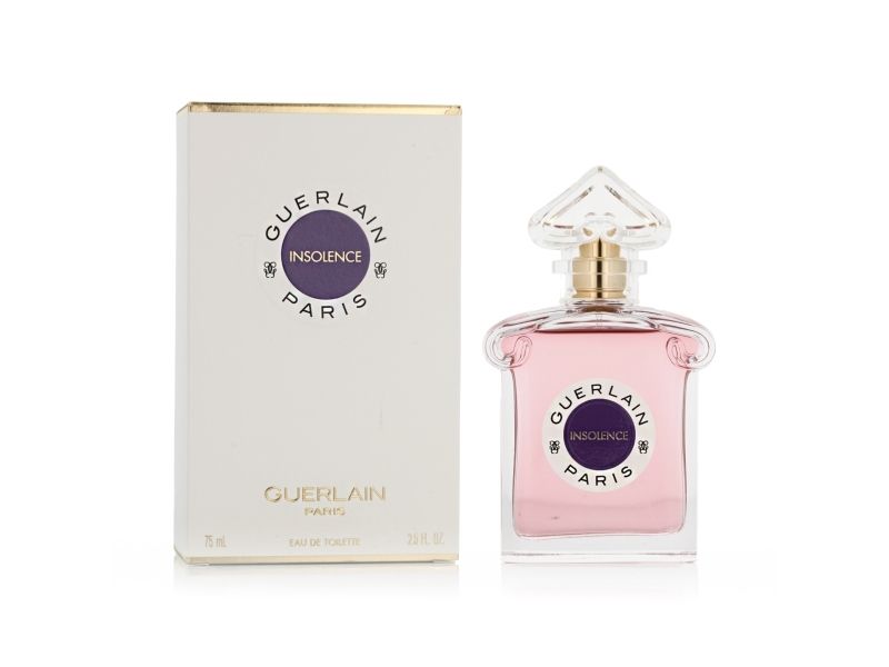 PERFUMERS SECRET The Eau de Toillette Insolence showcases an overdosed, high-voltage violet: a triumphant violet that registers at the opposite end of the spectrum from the shy whisper usually used to treat this flower in half-shades and shadows. This dazzling violet rubs shoulders with a timeless, chic and feminine iris. Insolence also initiates Guerlain's first use of berries in a composition.