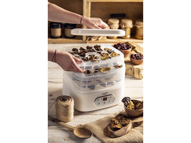 Over the years, there has been a growing interest in various ways of processing food products. Drying has become one of the most popular techniques, which works well not only during the autumn harvesting of mushrooms. You can do it with the food dehydrator ADLER AD 6658. It is the easiest way to extend the shelf life of your favorite products and provide yourself with healthy snacks or valuable ingredients for other dishes.