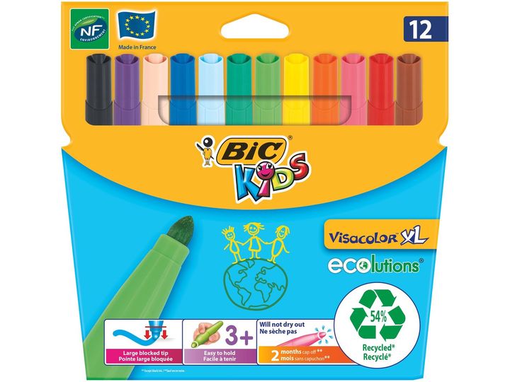 BIC 8922231, 12 farger, Flerfarget, Projektil spiss, Flerfarget, Rund, 3 år
