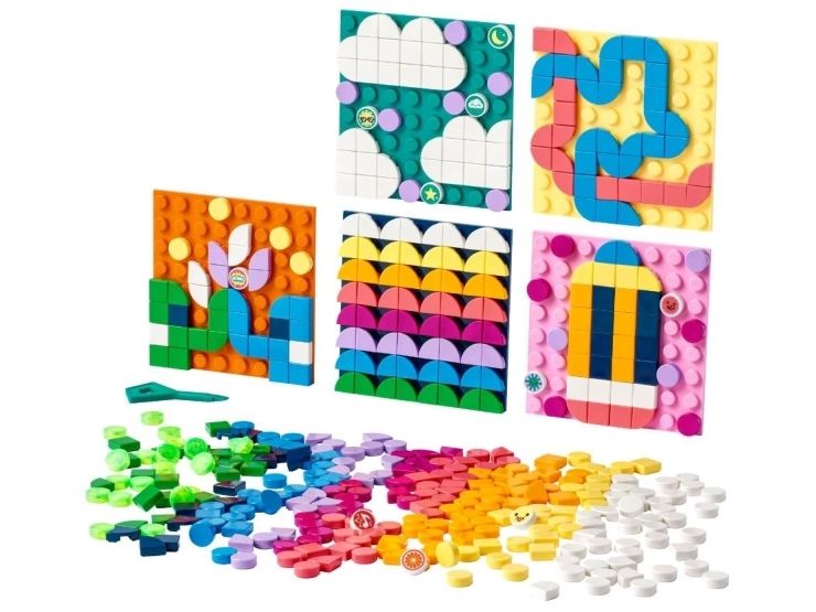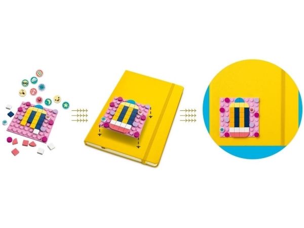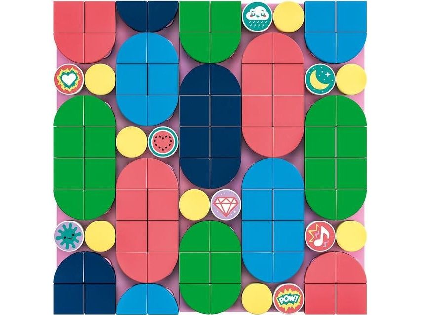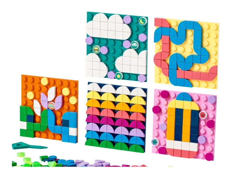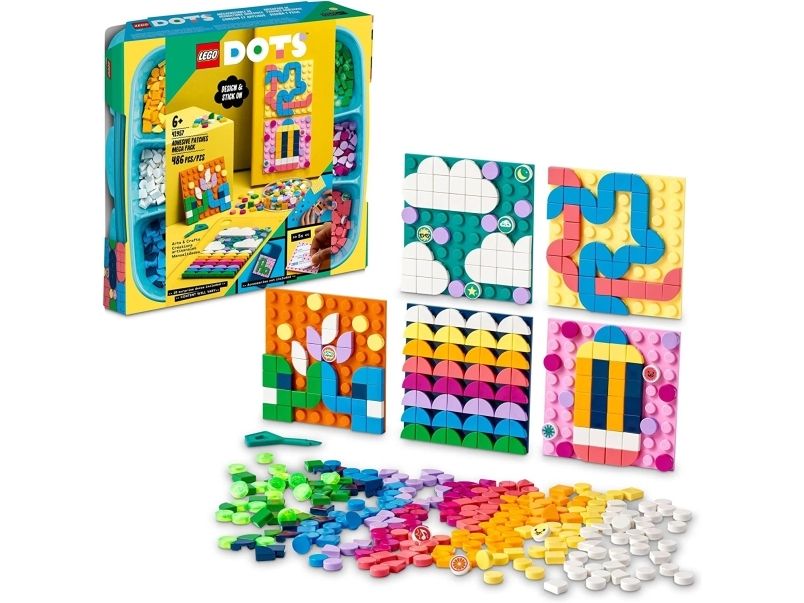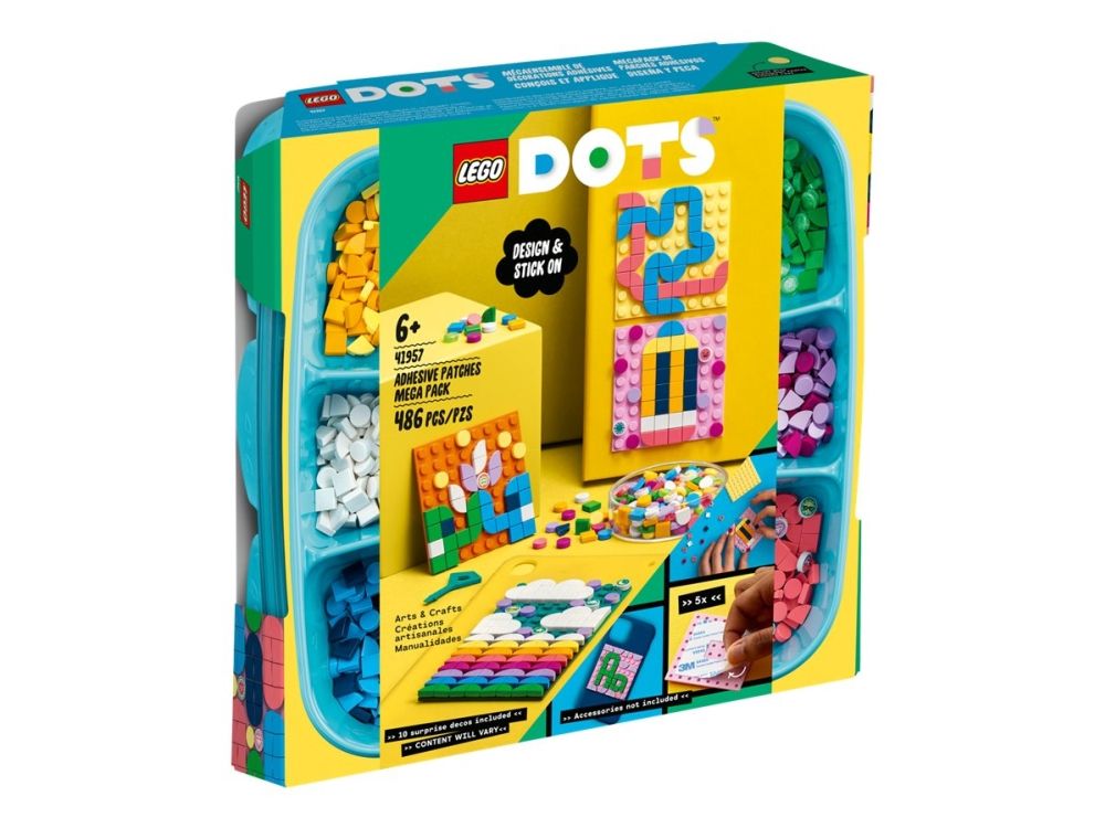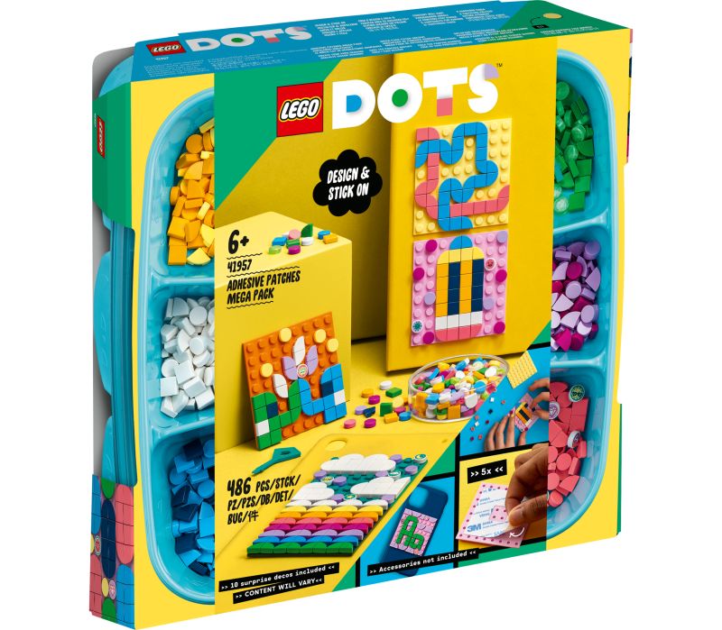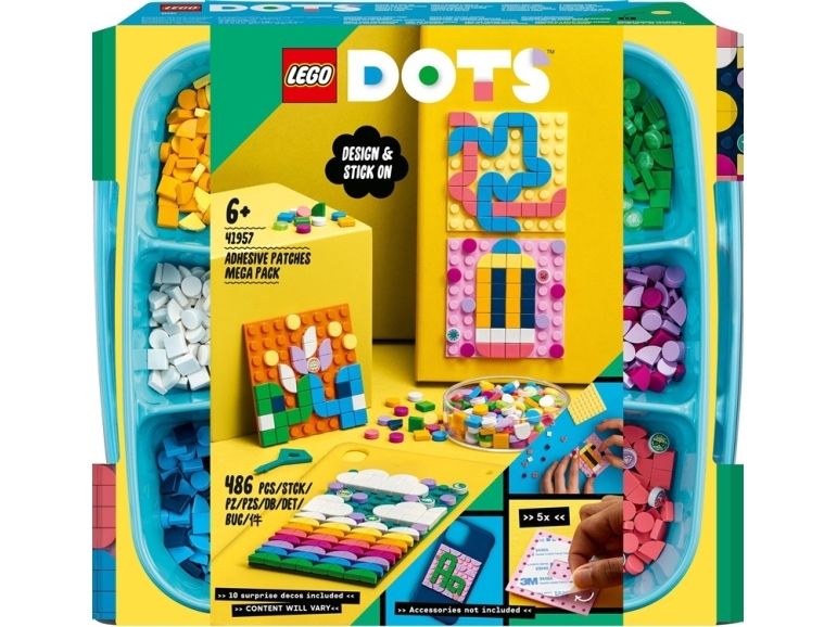 1. Designe, feste, vise fram x 5 – gi trendbevisste og hobbysett-interesserte barn det flotte aktivitetssettet LEGO® DOTS Megapakke med selvklebende merker (41957). Den kreative leken starter med en gang brettet åpnes