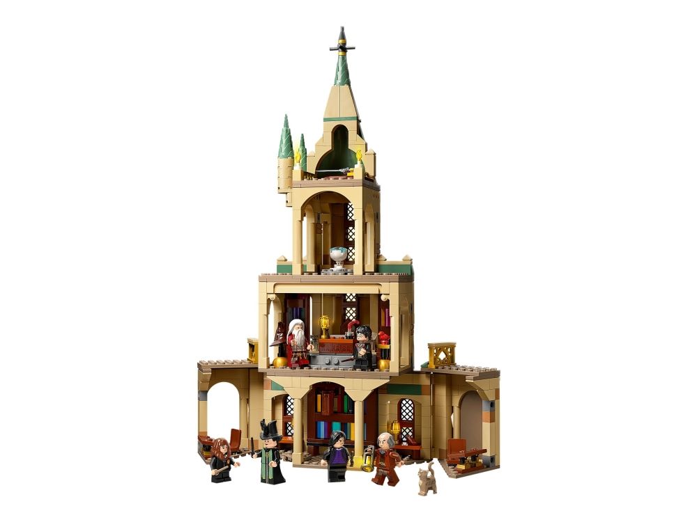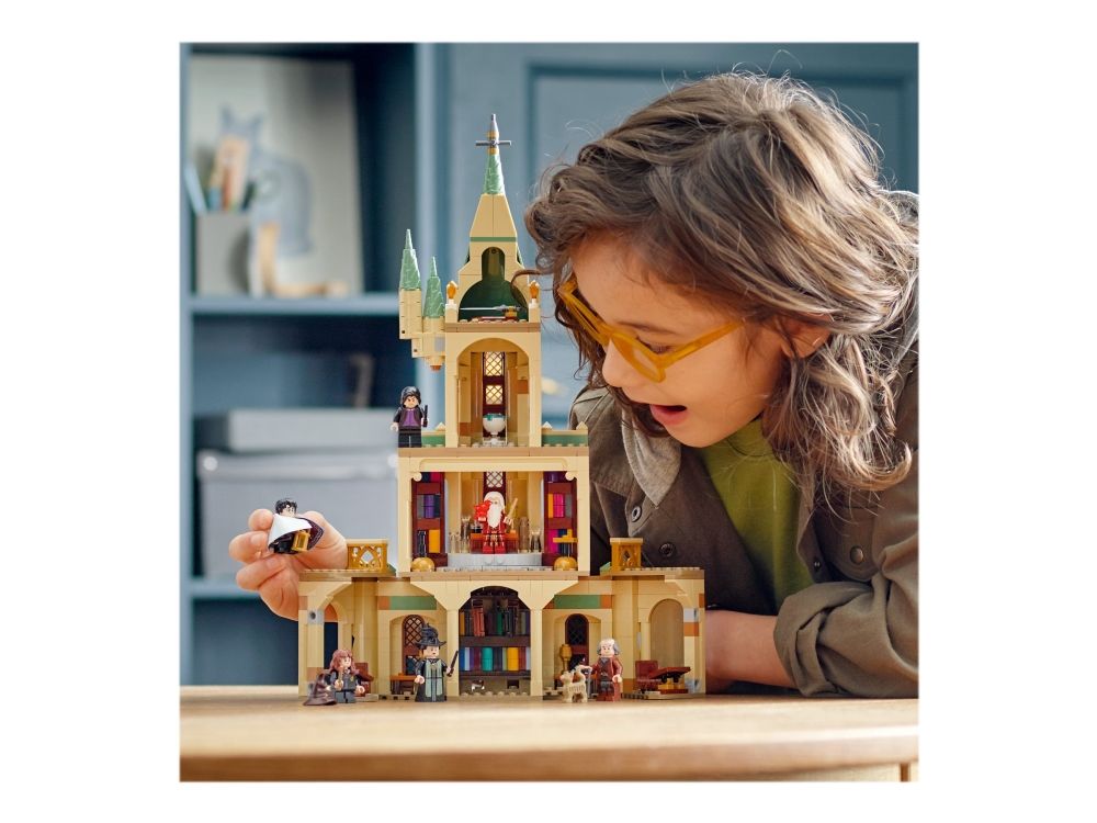Dette Galtvort-lekesettet går over flere etasjer og huser mange rom som stimulerer til fantasifull lek, takket være autentiske detaljer fra de populære filmene. Settet inkluderer minifigurer av Harry Potter, Hermine Grang, Albus Humlesnurr, Severus Slur, Argus Nask og madam Knipe. Settet inneholder også Harrys usynlighetskappe, tenketanken, Gudrik Griffings legendariske sverd, den populære valghatten og en fugleunge av Vulcan som står opp fra asken. Med gratisappen LEGO Building Instructions kan barn vise, zoome og rotere modellen mens de bygger, noe som gir en ekstra gøyal, interaktiv og engasjerende byggeopplevelse. Dette modulære settet kan kobles sammen med andre sett i serien, som til sammen danner en komplett Galtvortborg.