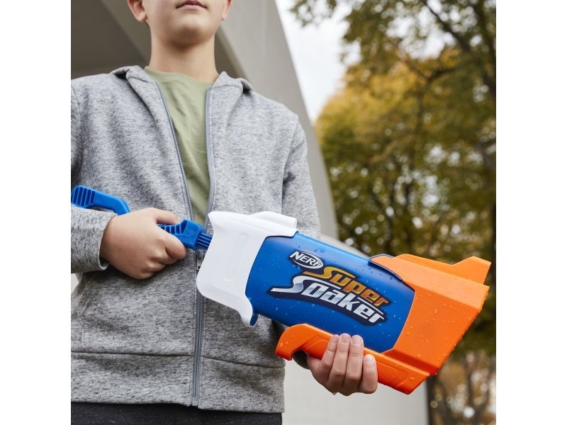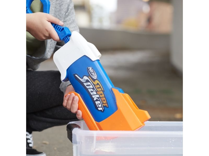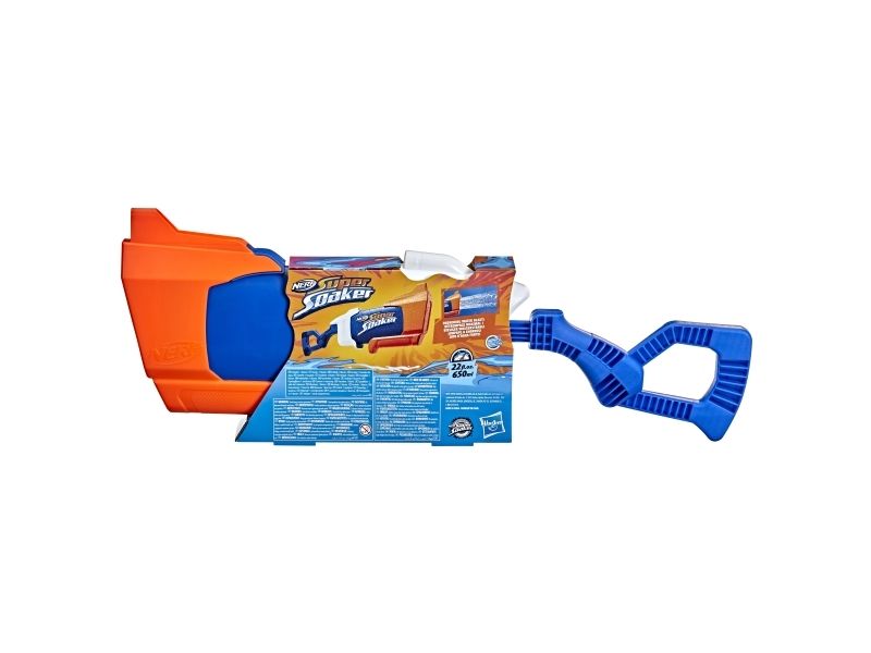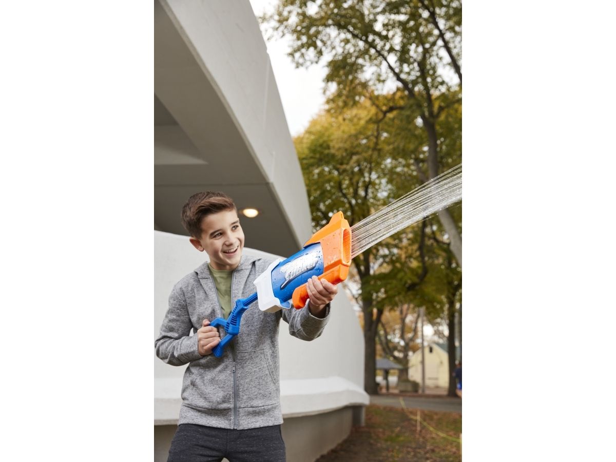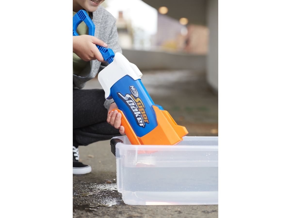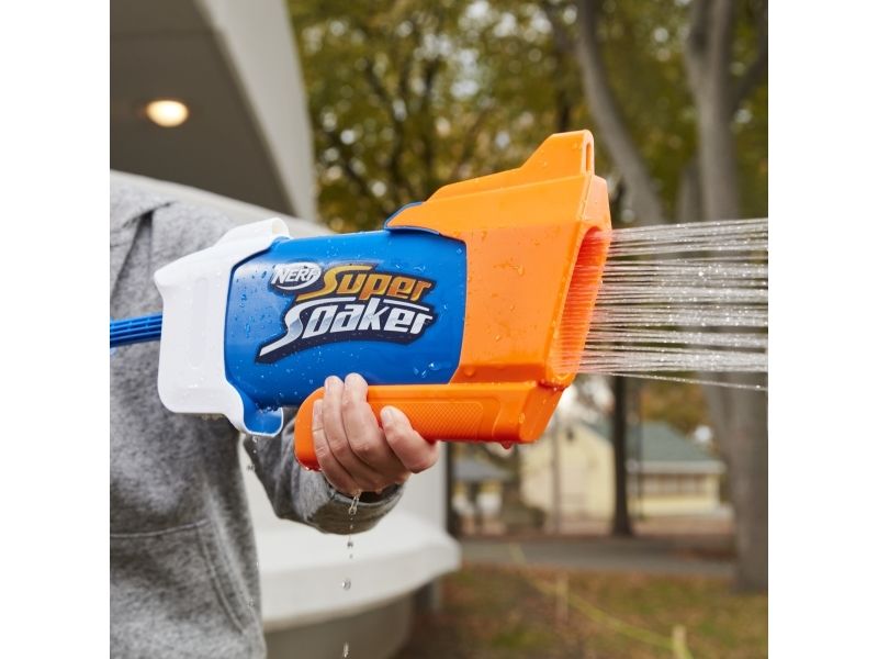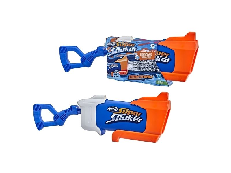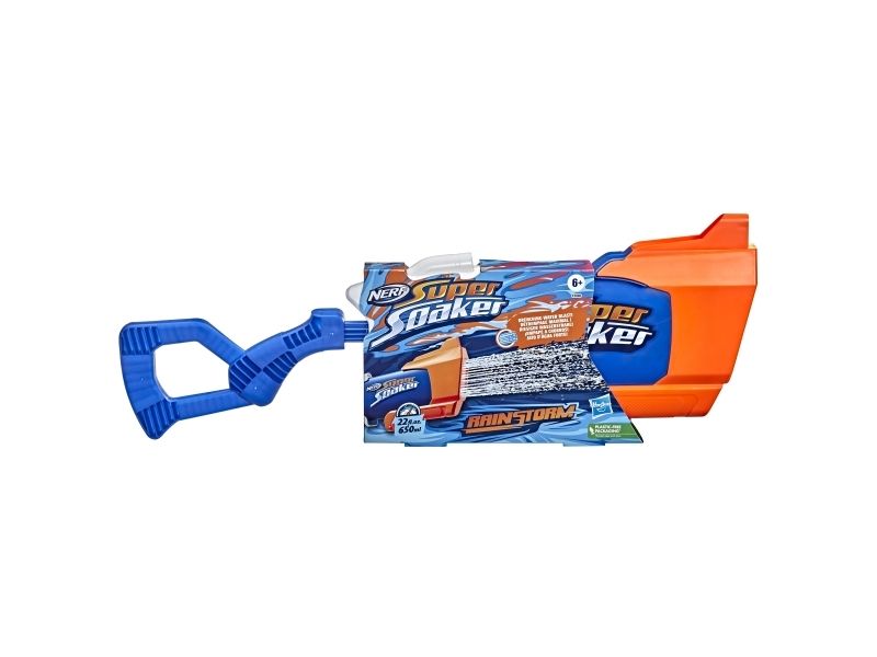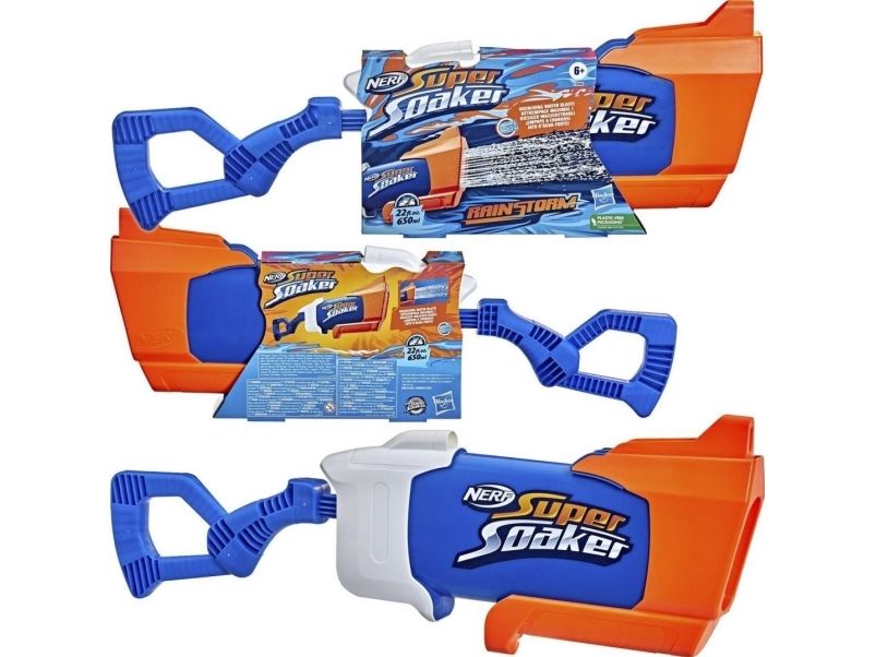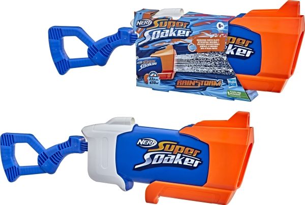 Overrask alle når du slipper løs en dynkende vannstråle fra Nerf Super Soaker Rainstorm-vannblasteren! Denne Super Soaker-blasteren er designet med et løp som stråler ut en kraftig skur med vann for å dynke motstanderne. Plasser fronten på blasteren i vann, og trekk stempelhåndtaket tilbake for å fylle tanken. Skyv deretter håndtaket fremover for å frigjøre en dynkende bølge med moro. Den er lett å bruke, slik at barn, tenåringer og voksne kan hoppe inn i vannkamper utendørs. Kom deg ut, vær aktiv og bli dynket! Tankkapasiteten er 650 milliliter. Nerf Super Soaker-merket har pøst på med moro siden 1989 og fortsetter å dynke alle med vannavfyrende galskap! Kom deg ut for ekstrem dynking med Nerf Super Soaker-blastere! Nerf Super Soaker og alle tilknyttede produkter er varemerker som tilhører Hasbro.